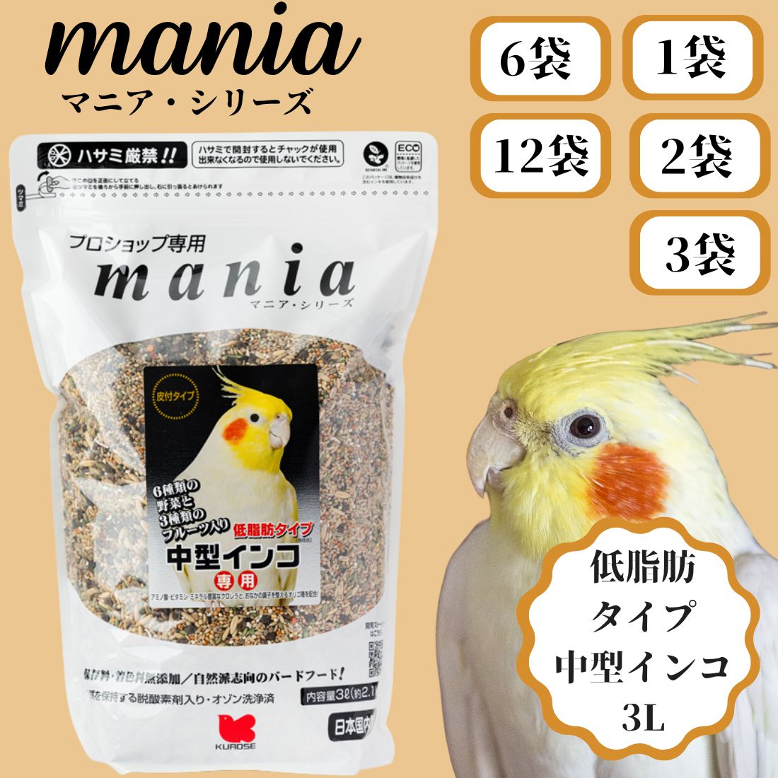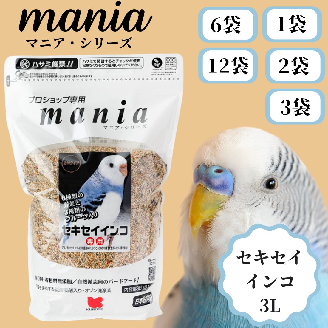 【選べる5種類、セット数】黒瀬ペットフード マニア マニアシリーズ 3L セキセイインコ 文鳥 中型インコ 中型インコ 低脂肪タイプ フィンチ 大型インコ 餌 鳥の餌 マニア(mania) mania 黒瀬ペットフード 鳥 可愛い 餌