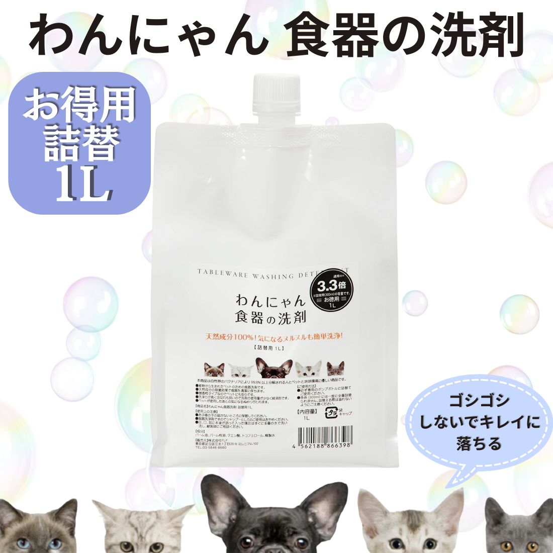 【選べる1 〜6袋セット】わんにゃん食器の洗剤 詰替用 1L 食器洗剤 泡タイプ 天然成分100% 犬 猫 ペット用 わんにゃん食器の洗剤 詰め替え 犬食器洗剤 犬食器 陶器 犬食器 洗剤 犬食器 高さ