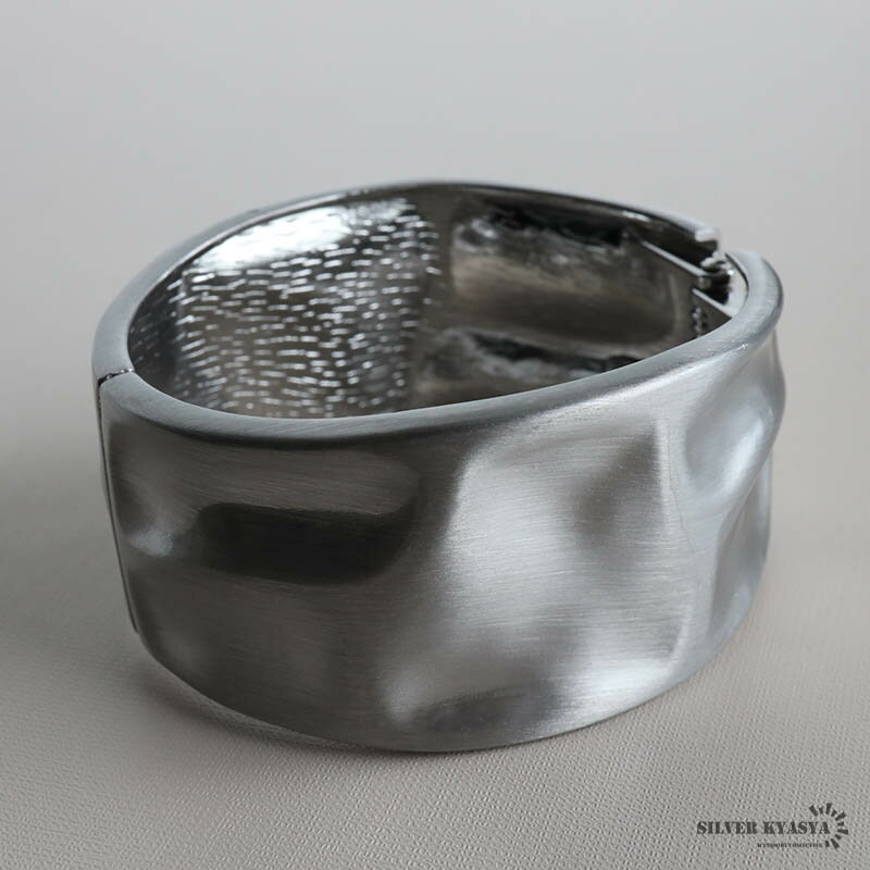 シルバー つや消し ワイドバングル 槌目バングル 不規則 ボーンカフ 腕輪 開閉式 着脱らくちん ごつめ 太め 幅広 存在感 お洒落 人気 トレンド 流行り