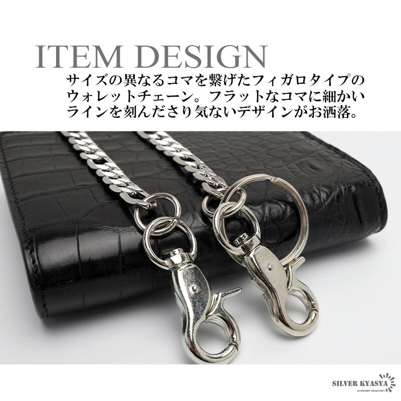 ステンレス フィガロ ウォレットチェーン 喜平チェーン フィガロチェーン 幅9mm フラットチェーン フック メンズ ダブルクリップ 財布紐 重厚 財布 鎖 盗難防止 紛失防止
