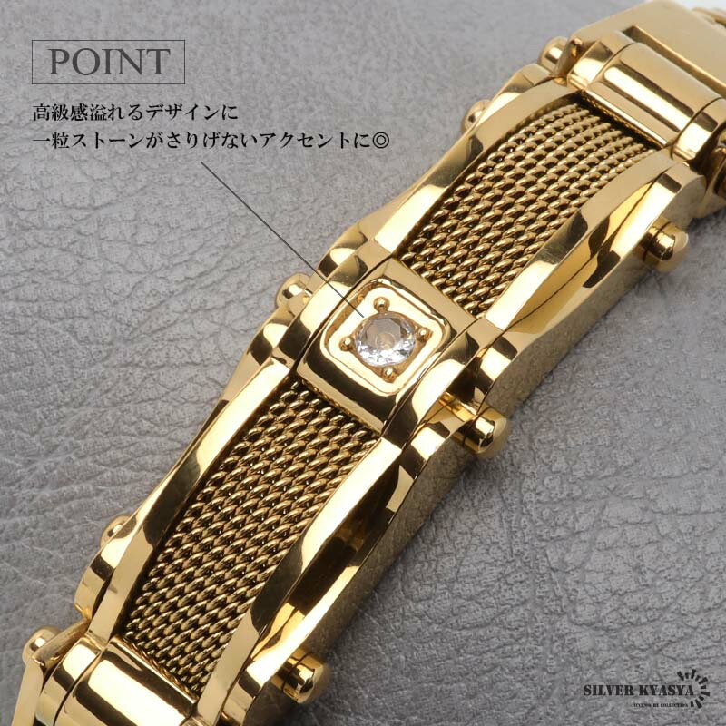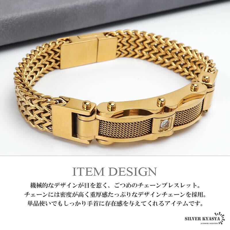 ステンレス メンズブレスレット ごつめブレスレット チェーンブレスレット ゴールドブレスレット 高密度 重厚感 機械的 一粒 マグネット ワンタッチ 男性 メンズ 金アレ対応