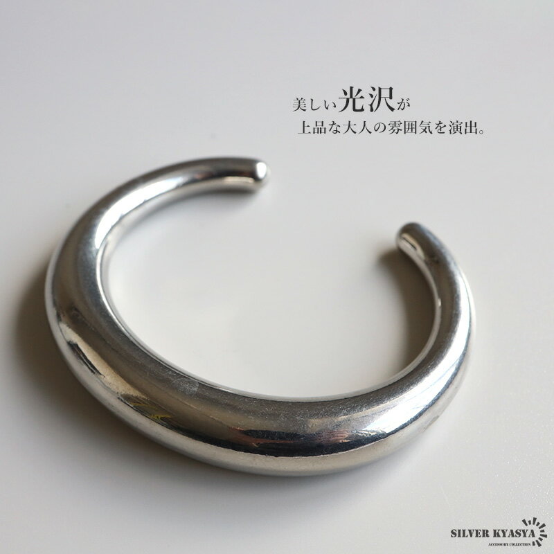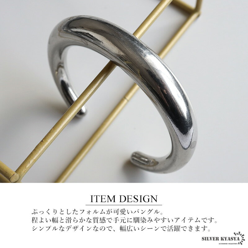 ステンレス ぷっくりバングル シンプルバングル プレーンバングル メタルバングル 中空仕様で軽い シルバー 銀色 ワイドバングル 太め レディース 女性 腕輪 金属アレルギー対応