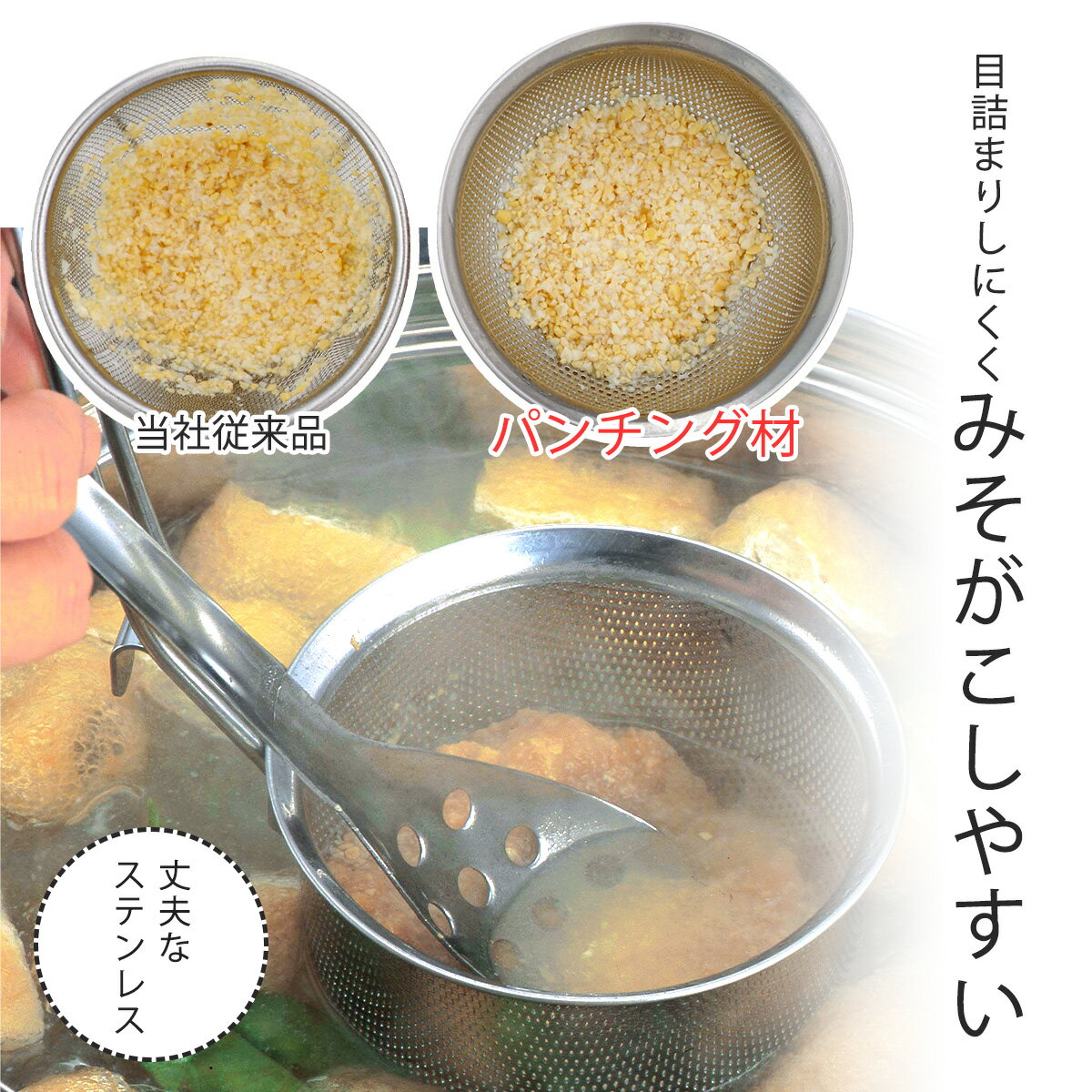パンチングみそこし味噌こし 味噌漉し パンチング みそこし 日本製 ステンレス製味噌汁 みそ汁 こし器 こしき 丈夫 調理器具 キッチン用品 頑丈お手入れかんたん 洗いやすい 下村企販