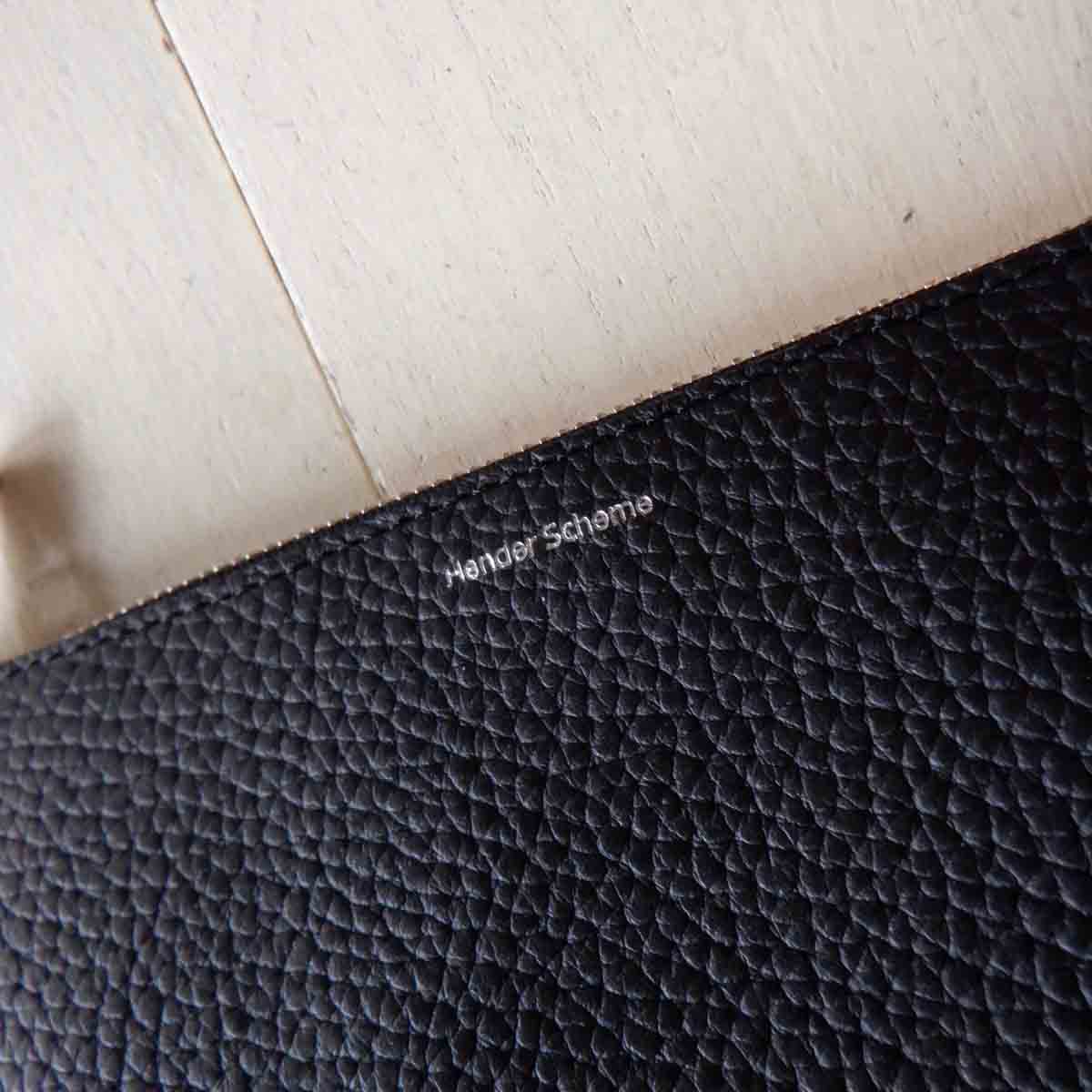 Hender Scheme エンダースキーマ シボのあるレザーで作成されたポーチ。 ファスナーはエクセラ。 bag in bagとしてもご利用頂けます。 size M(23 x 14.5 x 5.5cm) サイズ感の参考になればと、iPhone SE2を並べています。 color : black , white ※モニターによって色味が違って見える場合もございます。 made in JAPANHender Scheme エンダースキーマ