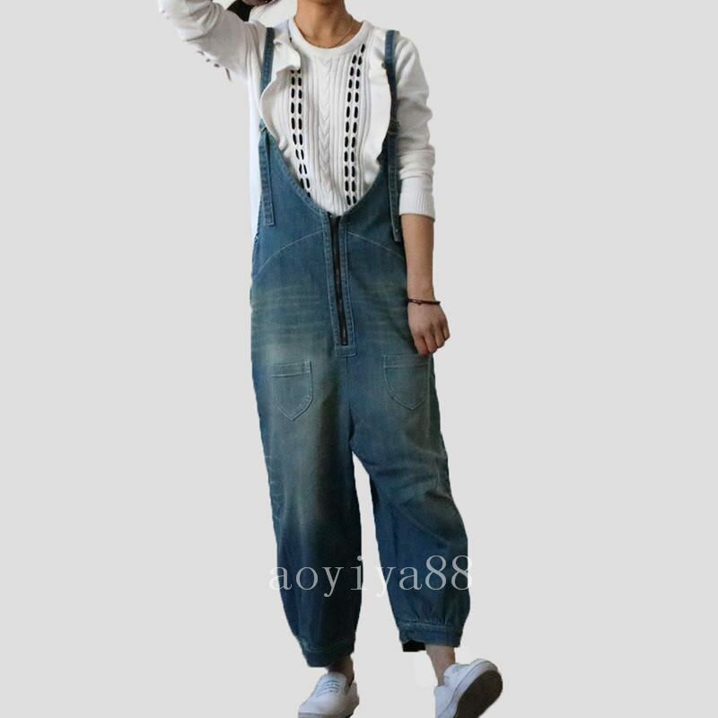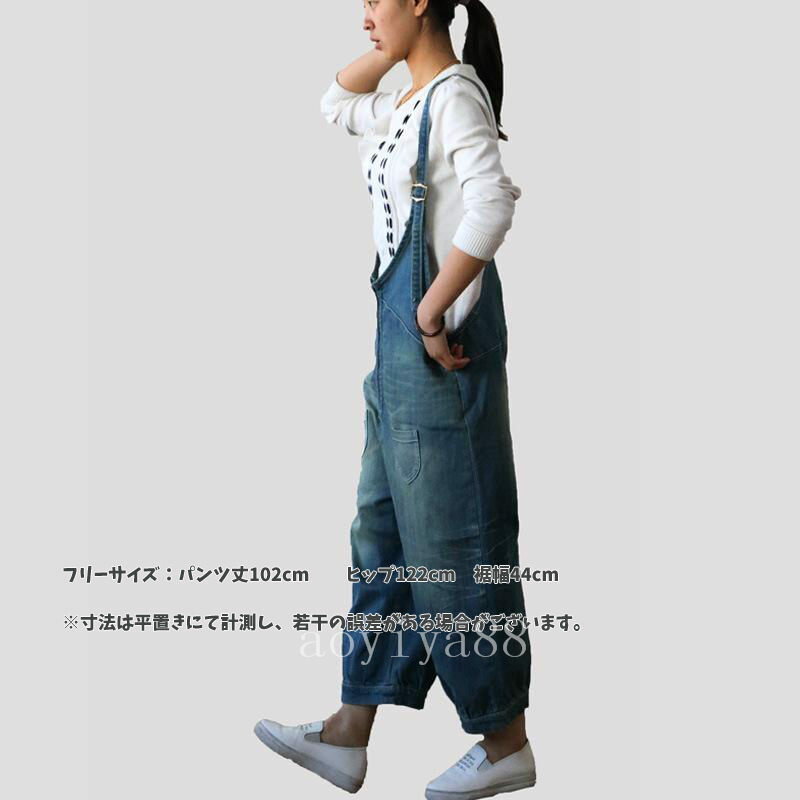落ち感 サロペット オーバーオール レディース ジーンズ デニム ロング ゆったり カジュアルファッション