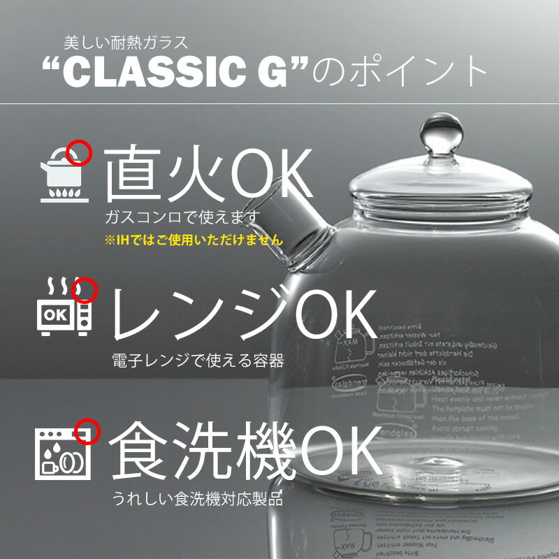 最大2000円引きクーポン★トレンドグラス イエナ クラシック trendglas jena CLASSIC 1.75G ガラスケトル ポット やかん 耐熱ガラス クリア 1.75L シンプル 直火対応 電子レンジ対応 IH不可 ウォーターケトル ティーポット プレゼント
