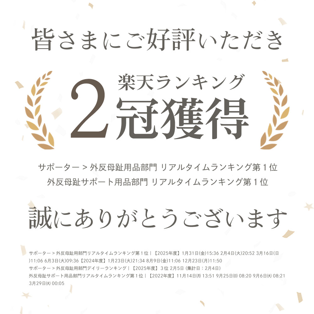 商品名 PREMIUMフットケアサポーター #6 人気No.1商品+人気No.2商品のまさかの効果もコラボサポーター 特徴 もっちり柔らかなシリコンが歩行時の衝撃や靴の圧迫をやわらげ、 外反母趾やタコ、イボによる痛みを優しくサポートします。 ・靴が履ける ・やわらかで自然な装着感 ・突き出た親指の付け根を守る柔らかなシリコンパッド ・親指にサッと通すだけの簡単装着 ・水洗いOKでいつでも清潔 ・装着するだけで足先から血行促進 >> IFMC.については こちら 【 岡村社長よりひとこと 】 3冠獲得商品の#8と#15がコラボした商品。2商品を同時に体感できるのはこちらのみ。ここから好みで#8・#15に分岐していくスタートシリコン 材質 SEBS 内容 左右兼用2個入り 生産国 日本 お手入れ方法 ご使用後は、水でやさしく手洗いし、風通しの良い場所で陰干ししてください。 乾燥後、全体にベビーパウダーを均一に振りかけていただくと、より快適にご使用いただけます。 ※洗濯機や乾燥機の使用はお避けください 注意事項 シリコンの特性及び製造工程上、サイズや形のばらつき、 シワが入る場合がございます。予めご了承ください。 使用上の注意 ※痛み・発疹・かぶれ・うっ血・かゆみ・しびれ等の異常を感じた場合は直ちに使用を中止し、専門医にご相談ください。 ※捻挫、骨折、傷、湿疹などの異常や末梢血行障害のある方、化繊やゴム、シリコン素材などにアレルギーのある方は使用しないでください。 ※機能のあらわれ方には個人差があります。 保証 30日間返品・交換保証 >>詳しくはこちら 送料 メール便無料 ※「IFMC.」「イフミック」「集積機能性ミネラル結晶体」は株式会社テイコク製薬社の商標または登録商標です。特許第6557442号 ■ 外反母趾専門本舗について >> ■ 公式アンバサダー紹介 >> 関連キーワード(本商品の説明ではありません)| 外反母趾 外半母趾 内反母趾 がいはんぼし サポーター 母趾セパレーター 足 の 親 指 付け根 たこ まめ 保護 パッド 器具 グッズ テーピング テープ ケア ケア クッション パッド パット 対策 予防 改善 治療 医療 用 靴擦れ 靴ずれ 靴擦れ防止テープ 男性 メンズ 女性 レディース 子供 ジュニア キッズ 小さい足 高齢者 用 立ち仕事 疲れない パンプス サンダル スニーカー 革靴 ローファー 靴下 誕生日 母の日 父の日 敬老の日 還暦祝い プレゼント ギフト2025年9月19日(金) ランキング獲得歴を更新 \ 楽天リアルタイムランキング第1位 / やわらかシリコンで 歩行時の痛みを緩和 指間のセパレーターが親指の重なりをサポートしながら やわらかなシリコンパッドが外反母趾にやさしくフィット。 靴による圧迫や衝撃を吸収しながら 痛みの緩和・矯正をサポートします。 毎日使いたくなる やわらかで自然な装着感 しっとりと肌触りの良いやわらかなシリコンで 長時間使用しても負担になりにくい、 絶妙なフィット感を実現しました。 関連商品 薄手だから様々な靴で装着可能。シリコンが肌に触れないタイプ。 指間を開きながら付け根をやさしく保護。親指に通すだけで装着完了。 柔らかな保護パッドと豊富なカラーで大人気。2本指装着でずれにくい。 親指・人差し指・中指の3本でしっかり固定。ズレが気になる方も安心。 商品名 #1 さらっさらっ やわらかぁいさぽぉーたぁー #6 まさかの効果もコラボサポーター #8 シリコンってまじすげぇサポーター #84 外反母趾を倒す戦いが今、始まる 価格 2,156円 1,859円 1,958円 2,057円 サイズ S・L FREE S・FREE ONE SIZE カラー 全2色 全3色 全8色 全1色 装着する指の本数 1本 1本 2本 3本 歩行時の痛みの緩和 〇 〇 〇 〇 靴の履きやすさ ◎ 〇 〇 〇 歩行時にしっかり矯正するタイプはこちら >>