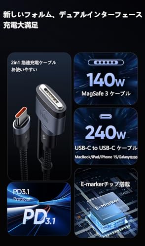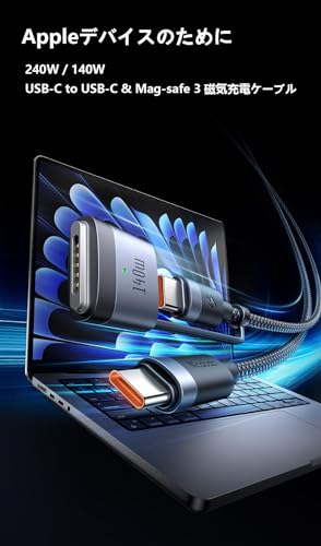 Mcdodo 240W / 140W USB-C to USB-C & Mag-safe 3 磁気充電ケーブル 140W(Mag-safe) 240W(USB-C) iPhone 16ケーブル PD3.1新急速充電規格 強力な磁気 Mag-safe 3ケーブル Type-C充電コード MacBook iPhone 16/15 Xperia Galaxy