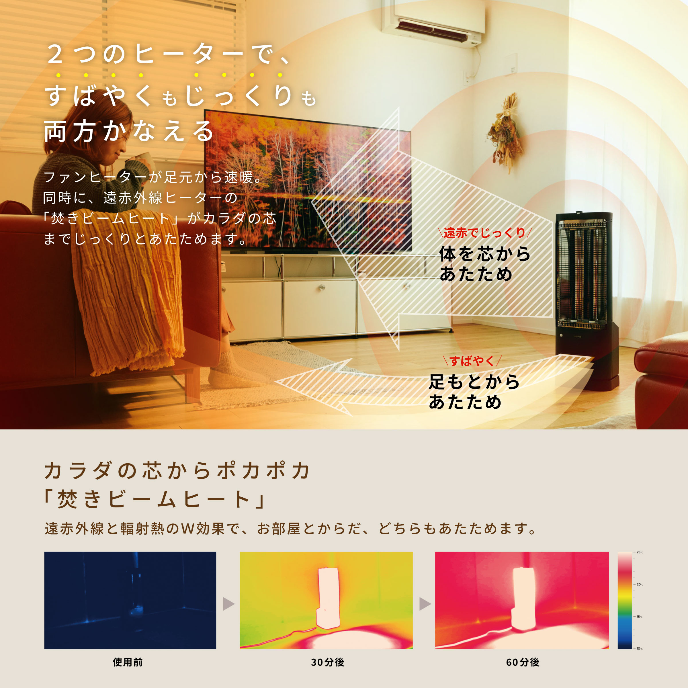 【シロカ公式】足元ファンヒーター付き 遠赤外線暖房機 にこポカ SH-FC131[2つのヒーター搭載/省エネ/エコモード搭載/首振り最大左右100°/切タイマー搭載/人感センサー搭載/転倒自動停止装置付き]