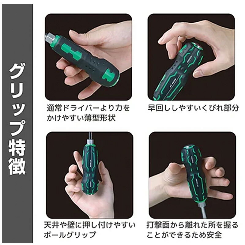 製品情報 製品番号 DZ-70 全長 121mm グリップ径 38mm 重量 146g 強力なトルクを生む、人間工学(エルゴノミクス)デザインのドライバー。 φ10mmの鉄芯を貫通させているため、ハンマーの衝撃をそのまま先端へ伝達。 ボルスター付きで、レンチなどを使用することで、高トルクを出力。 ビット差込み深さ33mmと浅く、全長50mm以上のドライバービットが使用できます。 差込み口は高精度加工によりビットとの隙間が少なく、作業時のブレを抑制。 【用途】 各種ネジの取り付け、取り外しに。 現場での修理、整備、自動車、バイク、自転車のメンテナンス、日曜大工に。 ※画像はイメージです。実際の商品とは異なる場合がございます。 ※パッケージにつきましては、メーカーの仕様変更等により予告なく変更になる場合がございます。パッケージの違いによる返品・交換は承っておりませんので予めご了承ください。