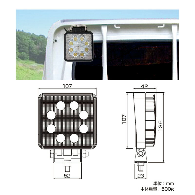 ML-18 カシムラ Kashimura 車両用 LEDワークライト 角 8灯 24W 白色 作業灯 白色LED 1560ルーメン/6000K DC12/24V 防塵・防水仕様(IP67)