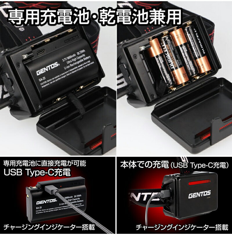【仕様・規格】 明るさ(lm):700 幅(mm):126.0 奥行(mm):33.2 高さ(mm):34.3 使用電池:GA-23 3.7V5,600mAh 最大点灯時間(h):12 充電時間(時間):5 保護等級:IP66 色:黒 質量:315G 【セット内容・付属品】 すべり止め付きヘッドバンド 保護カバー×2枚 ヘルメットホルダー USB Type-Cケーブル 専用ACアダプター 専用充電池GA-23×2個 【特長】 ・5年保証:最高の品質であるという自信の証として、業界初の「5年保証」を実現。(※別途ジェントスのユーザー登録が必要です) ・USB Type-C充電 ・COB LED:多数のLEDチップを密集して基板に直接実装した光源。多灯式に比べ多重影ができにくく、照射範囲も広い特長を持つ。 ・インスタントオフスイッチ:点灯後、一定時間経過後にスイッチを押すと、どのモードからでも一回の操作で消灯できます。 ・後部認識灯:点灯・点滅により後方からの視認性を確保。 ・スイッチロック機能(後部認識灯のみ):誤点灯防止のため、消灯時にスイッチを長押しするとスイッチが作動しなくなる機能。 ・メガタフコード:75,000回以上の折り曲げテストをクリア。断線しにくいコードを採用。 ・チャージングインジケーター:充電中の充電状態をお知らせ。 ・点灯順序切替え機能搭載で点灯モードのスタートをHighモードかEcoモードに切り替え可能。 ・80°可動式ヘッド ・【ヘッド部】ヘッドプッシュスイッチ、【電池ボックス部】ヘッドプッシュスイッチ ※画像はイメージです。実際の商品とは異なる場合がございます。 ※パッケージにつきましては、メーカーの仕様変更等により予告なく変更になる場合がございます。パッケージの違いによる返品・交換は承っておりませんので予めご了承ください。