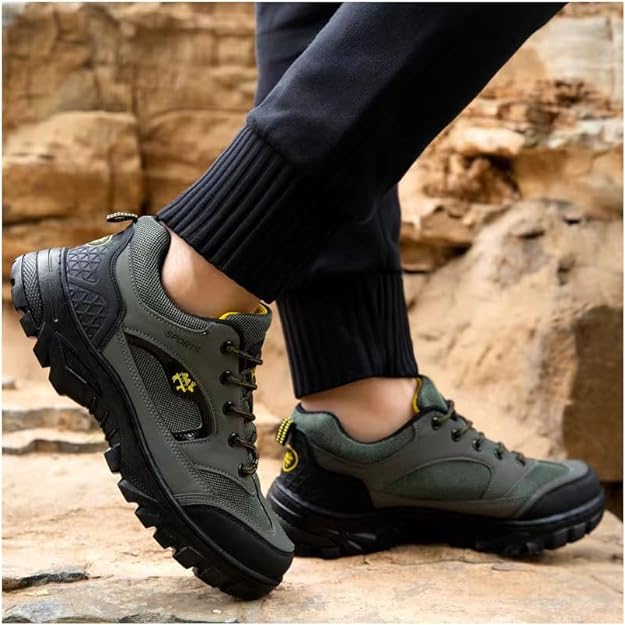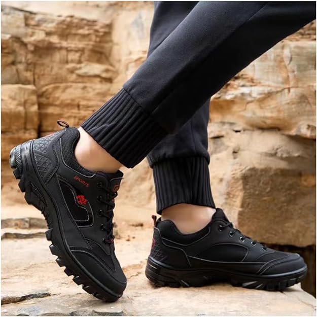 トレッキングシューズ メンズ トレッキングシューズ 登山靴 アウトドア ハイキングシューズ メンズ 厚底 ウォーキングシューズ 大きいサイズ キャンプシューズ 軽量 通気 滑り止め 耐摩耗性 衝突防止 登山靴 24.0cm-27.5cm ソールは、滑り止めゴム素材を採用した深溝パターンのハイグリップアウトソールで、クッションを保ちながら、強い摩擦抵抗があり、滑りにくくて耐磨耗性が良い。 【 登山の必需品 】 登山を快適に楽しむために大切なのは、「疲れを軽減」「安全に歩ける」2点の特徴のシューズです。柔らかいクッション性と厚底ソールで快適に登山をお楽しみいただけます。これから登山を始める方の、初めてのトレッキングシューズの1足にオススメです。また、タウンユースのスタイルにもすんなり馴染む、汎用性の高いアイテムとなっております。晴れの日でも、雨の日でも、安心して履いていただけます。【通気性&防水】 長時間着用しても蒸れにくい通気性メッシュ素材のインナーを採用しているので、通気性は良好。シューズの中の水分を逃し、ムレ、足の冷えをブロックし、長時間の着用でも快適にお過ごしいただけます。革と厚いゴム製のつま先を包み込んで、足をしっかりと保護、ケガを防ぐ!下部3センチメートルは完全防水(長時間の浸水等にはご注意ください。) 【通気性良く蒸れにくい】通気性のある素材を使う【耐磨耗性/衝撃吸収】ソールは、滑り止めゴム素材を採用した深溝パターンのハイグリップアウトソールで、クッションを保ちながら、強い摩擦抵抗があり、滑りにくくて耐磨耗性が良い。足のまだインソールが足をより快適に感じさせ、優れたクッション効果をもたらすようにしました。歩きやすくて、長期に履いても変な形になりません。【疲れにくい】屈曲性に優れたミッドソールを採用し、快適な歩行をサポート。クッション性と軽量性を併せもち定番ハイキングシューズ。長い距離を歩いても足が疲れにくい、登山靴 としては勿論、日常使いや旅行、街歩きにも向いています。【幅広く活躍】防滑、防水機能を兼ね備えたシューズ、アウトドアからカジュアルまで履くことの出来るアウトドアシューズ! アウトドアシューズとしても、登山遠足、キャンプ、ジョギング、ハイキング、旅行、スポーツ、通勤、通学、作業靴などにもおすすめます。ホールド感にもこだわりがあり、しっかりとした履き心地なので足首にも優しく、長くお使いいただけます。ライダーブーツとしてメカ的なガジェットにも合わせやすいので、ツーリングの時などでもお勧めできます。色々なボトムに合わせられるので季節を選ばず、春夏秋冬オールシーズンで使えるのも優れている点、色々な場所に行く旅行などに持っていく1足としても便利です。 5