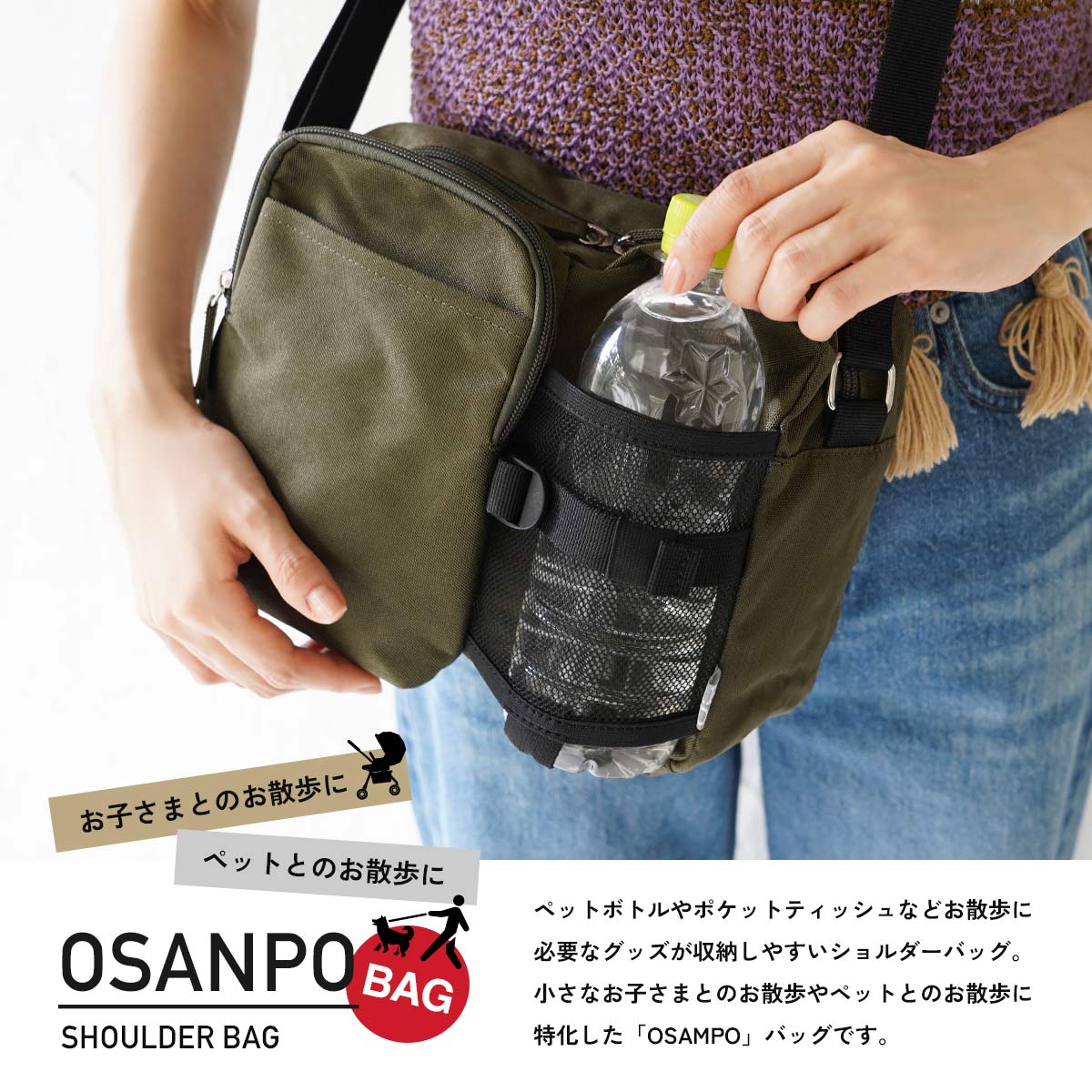 【まとめ割最大15%OFF】お散歩バッグ ショルダー 犬 ペットボトル うんち 使いやすい 消臭機能 小型犬 マナーポーチ ペットボトルフォルダー おしゃれ 多機能 OSANPO ペットバッグ おさんぽバッグ メッシュ