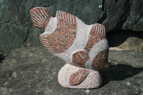 【送料無料】「石の魚」【赤石】魚の彫刻品です♪