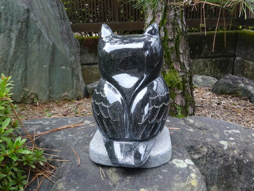 【送料無料】【石ふくろう】黒磨きフクロウ玄関先やお庭のインテリアに最適!!石フクロウなら当店におまかせ^^♪【ガーデニング】【ふくろう】【フクロウ】【石のふくろう】【ふくろう彫刻品】【ふくろう置物】【石フクロウ】