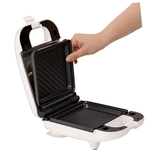 お好みの食材をパンにのせてフタを閉めるだけ。 約3分でサクッと香ばしいホットサンドが焼きあがります。 プレートの深さが約1.5cmあるから、6枚切りの耳付きパンやマフィンも焼けます。 たっぷり具材を挟んで、ボリューム満点の厚焼きホットサンドが作れます。 フッ素樹脂加工&着脱式プレート 油をひかずに調理できるのでノンオイルでヘルシー 着脱式プレートなので、水洗いできてお手入れ簡単です。 ・縦置きコンパクト収納 ・本体の裏面にコードが巻けるので、スッキリ収納 定格電圧:AC100V 定格周波数:50/60Hz 消費電力:650W 温度ヒューズ:240℃ 本体サイズ:約W15×D24×H11cm 本体重量:約1.1kg(プレート含む) 電源コード:約0.9m 材質本体:フェノール樹脂 本体プレート:アルミニウム( フッ素樹脂加工 ) ※写真はイメージです。 写真と実際の商品とは多少異なる場合がございますがご了承ください。 ホットサンドメーカー 電気 耳まで 着脱式 厚焼き フッ素樹脂加工 コンパクト お手入れ簡単 ホットサンド プレスサンド おしゃれ 朝食 朝ごはん ランチ ブランチ ピクニック 運動会 お花見 KDHS-003W 新生活 新生活準備 引っ越し祝い プレゼント ギフト 送料無料ホットサンドメーカー 電気 耳まで 着脱式 厚焼き ほっとさんどめーかー ホットサンドメーカー 電気 耳まで 着脱式 厚焼き フッ素樹脂加工 コンパクト お手入れ簡単 ホットサンド プレスサンド おしゃれ 朝食 朝ごはん ランチ ブランチ ピクニック 運動会 お花見 KDHS-003W 新生活 新生活準備 引っ越し祝い プレゼント ギフト 送料無料