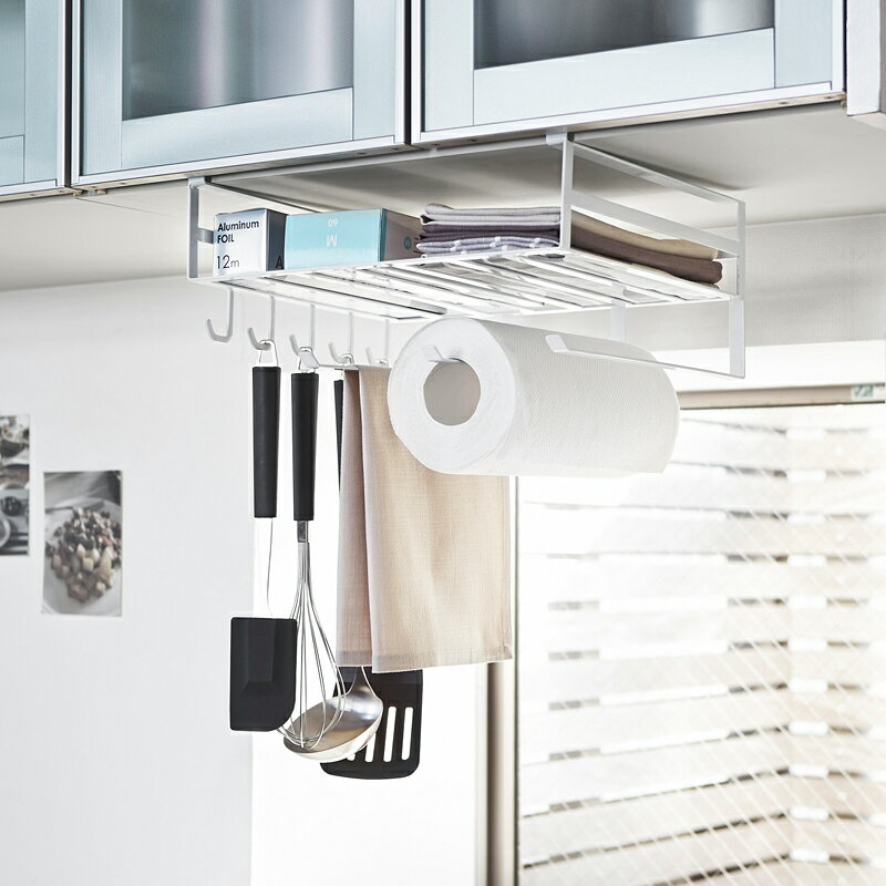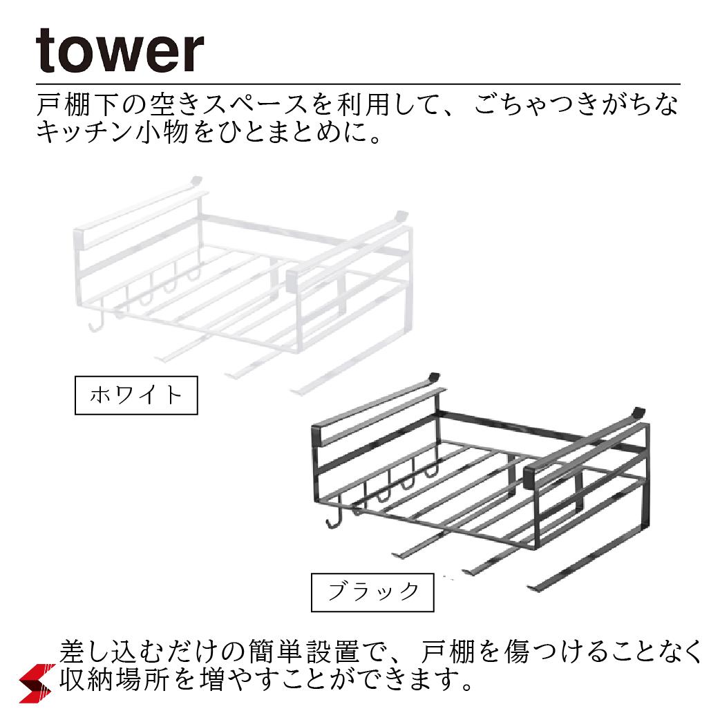 tower タワー 戸棚下多機能ラック 見せる収納 シンプル 収納 山崎実業 ヤマジツ 吊るす収納 フック キッチンペーパー ラップ シンプル 小物収納 ハンガー 便利グッズ 便利アイテム プチギフト〈4903208028455〉 〈4903208028462〉