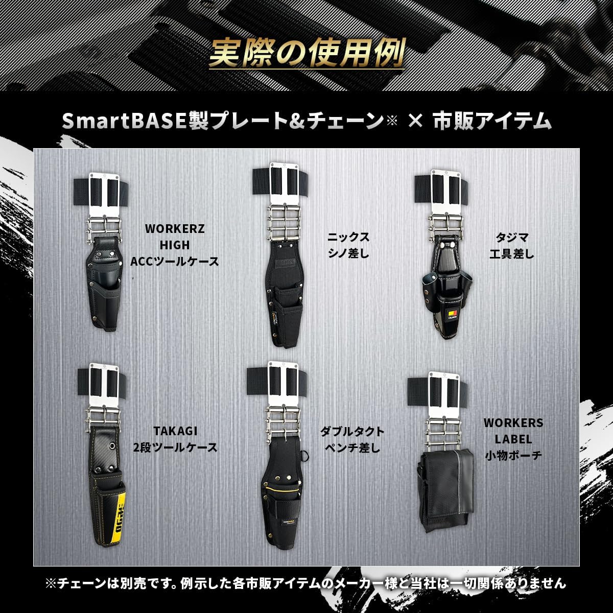 メーカーの垣根を越え、プロの創造力を解放する。 SmartBASE カスタムベルトループプレート 「もっと自由に、自分だけの理想の腰道具を構築したい」 「ハードな現場で、毎日安心して使える、本物の信頼性が欲しい」 SmartBASEは、そんなプロフェッショナルの皆様の声に応えるために生まれた、新しい腰道具カスタムパーツブランドです。 【圧倒的な溶接強度】公的機関が、信頼を証明。 公的試験機関での引張試験において、2トン (20,000N) を超える荷重をかけても、製品の心臓部であるTIG溶接部は破断しませんでした。 ハードな現場での酷使にも耐え得る、プロ仕様の信頼性を提供します。 ※試験結果は新品のプレートをサンプルとした代表値であり、保証値ではありません。 プロを魅了する、SmartBASEプレートの核心 【1】あらゆるブランドが、あなたの“チーム”になる 主要ブランドの工具差しや腰袋などに幅広く適合。別売のチェーンと組み合わせることで、ニックス(KNICKS)の腰袋、WORKERZ HIGHのツールケースなど、メーカーの垣根を越えてあなただけの理想の腰道具を構築できます。 【2】オールステンレスの輝きと、高強度TIG溶接 素材はすべて、錆びにくく高強度なステンレス鋼(SUS304)。プレート本体はもちろん、パイプの末端に至るまで、職人の手で一点一点丁寧に磨き上げた全面鏡面仕上げ。接合部は見た目も美しいTIG溶接で仕上げています。 【3】重ね付けで、広がる拡張性 プレート上にタジマの「セフホルダー」などを重ね付け可能。固定式のアイテムと着脱式のアイテムを併用することで、腰道具の利便性が飛躍的に向上します。 【【サイズに関する重要なお知らせ】】 ・「ノーマルサイズ」のプレートには、スリムサイズのセフホルダーが適合します。 ・「ロングサイズ」のプレートには、通常サイズのセフホルダーが適合します。 サイズのお間違えにご注意ください。 【4】日本企業による、安心の企画・品質管理 日本のプロ職人の厳しい要求に応えるため、企画・設計・品質管理はすべて日本国内で実施。海外の提携工場での製造後も、第三者機関と自社による三段階の厳格な検品を行い、顕微鏡レベルで溶接部の仕上がりを確認しています。 【プレートと同時購入がおすすめ】連結カスタムチェーン プレートの性能を最大限に引き出す、オールステンレス仕様の専用チェーンもございます。 【軽量&カラーモデル】アルミ削り出しプレートもございます 超軽量設計と、アルマイト処理による美麗な全7色展開が魅力のモデルです。 商品仕様 商品名 連結ベルトループプレート 腰道具カスタム用 バリエーション ノーマルサイズ / ロングサイズ 素材 ステンレス鋼 (SUS304) 寸法・重量 ノーマルサイズ:約 縦83mm × 横60mm × 高さ13mm / 約54g ロングサイズ:約 縦96mm × 横65mm × 高さ13mm ※ベルト幅53mmまで対応 内容物 カスタムプレート本体 ×1 ※チェーン、ボルト、ナット類は別売です。 ご購入前にお読みください 当商品ページに記載する他社様の商標等は当社製品の互換性を示すためのものであり、各社様と当社の間に提携・承認等の関係があることを示すものではありません。また、試験結果は保証値ではありません。