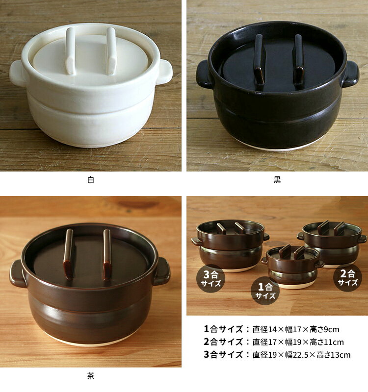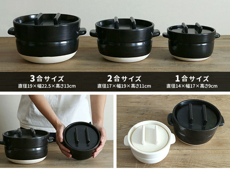 かもしか道具店 ごはんの鍋 1合炊き 日本製 土鍋 炊飯 調理器具 おひつ 陶器 保存器 器 1合 煮込み料理 萬古焼 土鍋 直火用 電子レンジ対応 食洗機対応 オーブン対応 白 黒【ポイント10倍】【p1127】
