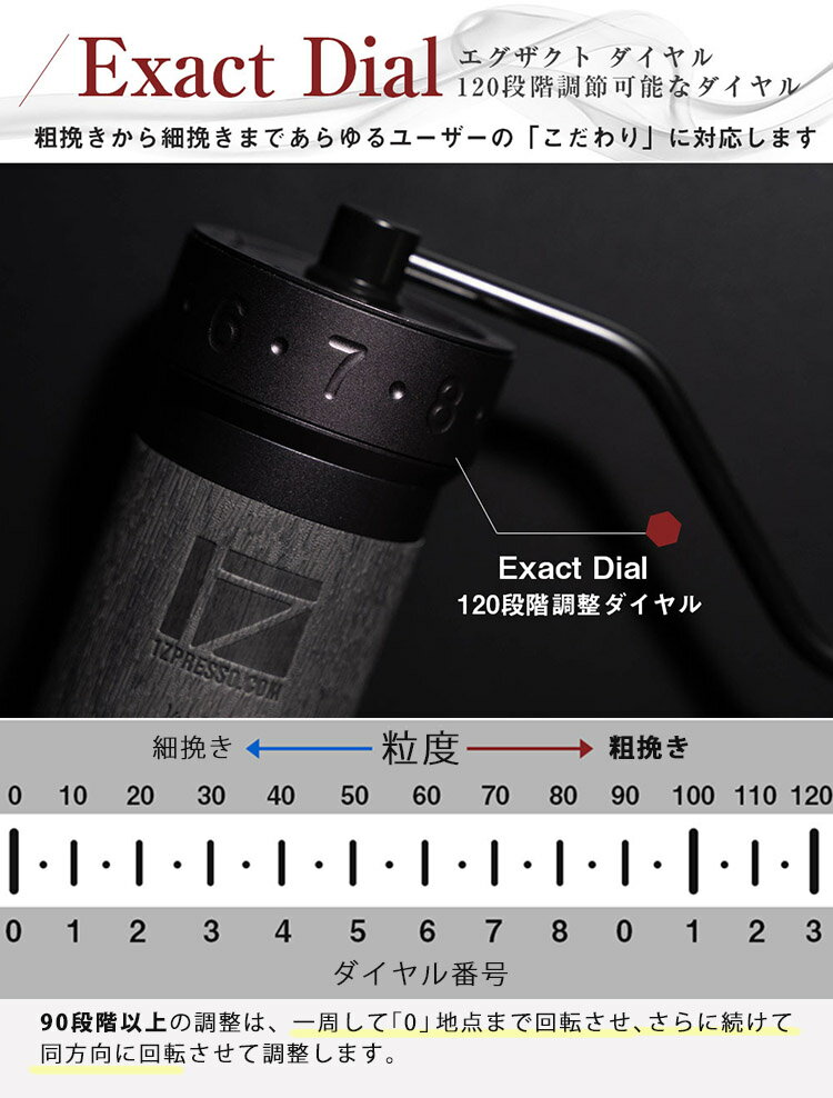 ■商品名:コーヒーグラインダー JPpro ■管理番号:LOGI-LG-1ZPRESSO-JPPRO ■サイズ(約):JPpro本体)縦200×横60mm携行バッグ)縦260×横110mm ■重量(約):約685g ■付属品:エアダスター、ブラシ、携行バッグ ■備考:120段階粗さ調節可能(ダイヤル式) ■保証期間:1年 ■生産国:中国(メーカー:台湾) ■ご注意: ※商品の色はモニターの具合で実物と若干異なる場合がございます。予めご了承下さい。 ※デザイン、仕様等につきましては、予告なく変更する場合がございます。予めご了承下さい。 ※複数店舗を運営しておりますため、ご注文の入れ違い等で欠品などになってしまう場合がございます。万が一、発送が遅れる場合は、ご注文受付当日中にご案内差し上げます。誠に恐れ入りますがご了承くださいますよう、お願い申し上げます。 ※ご予約・お取り寄せ商品は、ご注文受付後にお客様ご注文分としてメーカーへ発注を致します為、基本的にキャンセルやご返品はお受けできません。コーヒーグラインダー JPpro 世界最高峰がさらに進化。プロの味を手軽に持ち運べるコーヒーグラインダー TBS 1/365日のマニアさんにて紹介されました!! 世界最高峰がさらに進化。プロの味を手軽に持ち運べるコーヒーグラインダー Zproを超える120段階のダイヤル粒度調整を可能とした日本限定オリジナルデザイン。プロの領域のコーヒーを誰でも簡単に味わっていただける最高級の手挽き式コーヒーグラインダーです。誰でも使える軽いボディと、本木目の挽きやすい逆三角形の持ち手で、従来モデルよりさらに使いやすくなりました。● 120段階の超微調整設計: 粗挽きから細挽きまできめ細やかな設定が可能です。● 高精細ステンレス刃: 微粉が極めて少なく、世界トップクラスの精度の高い均一な粒度を実現。● こだわり設計: 高級感漂う持ち手のハンドルは、挽きやすさを重視した形状に設計。● 長く使える: パーツの分解組立がシンプル。いつまでも清潔にお使いいただけます。 120段階調節可能。エグザクトダイヤル 驚異の0.022mm単位。120段階もの粒度調整機能搭載。粒度が均一できめ細やかな設定が可能に。調整ダイヤルは本体外側に設置することで、粒度が調整しやすいよう設計されてます。 「砕かず、切る」を実現 心臓部の刃は比重・密度の高いステンレスを採用。軸を支える3つの金属ベアリングで高精度の切削を実現しました。刃の振動を極限まで抑えることで、粒度の均一性が格段にアップ。雑味やえぐ味の原因となる微粉が極めて少ないので、クリーンでクリアな本来のコーヒーの味を楽しむことができます。※3〜4杯分のコーヒーの抽出が一度に可能。1回に約35〜40gの容量を挽くことができます。 こだわりのデザイン設計 「もっと使いやすく」を叶えるため、ハンドル長さを従来モデルより長めにしつつ、ボディは軽量化。持ち手のボール部分を逆三角形にすることで、より少ない力で豆が挽けるようになりました。天然の木を使用することで握りやすさはもちろん、高級感のある仕上がりに。 高性能、なのに驚きの簡単分解設計 最大10点のパーツに分解することが可能です。いつまでも清潔に使って頂けるように、簡易分解を可能な設計に。1μm以下単位での正確なパーツの為、接着剤や特殊ネジは使用していません。※付属のエアダスターでお手入れが可能です。 本体は685gと驚きの軽さ。ポータブル化された高級コーヒーミルで、どこでもお好みの場所で本格コーヒーをお楽しみいただけます。 ■検索用キーワード:プチギフト おもたせ 贈答品 返礼品 お返し サプライズ 記念日 誕プレ 誕生日プレゼント クリスマスプレゼント お中元 お歳暮 暑中見舞い 残暑見舞い 寒中見舞い 余寒見舞い 進級祝い 進学祝い 入学祝い 卒業祝い 成人祝い 成人式 入籍祝い 新築祝い 内祝い 引き出物 引っ越し祝い 引越し祝い 引越祝い 転居祝い 入社祝い 就職祝い 転職祝い 昇進祝い 就任祝い 退職祝い 送別 開店祝い 開業祝い 開院祝い 移転祝い 出店祝い 新店祝い 周年祝い オープン祝い 大学生 社会人 敬老の日 定年祝い 還暦祝い 友人 友達 友だち 彼女 妻 母親 彼氏 夫 父親 10代 20代 30代 40代 50代 60代 70代 LG-1ZPRESSO-JPPRO ISSEI OGOMORI総合監修 尾籠一誠監修 日本限定発売モデル 手挽き 臼式 豆挽き コーヒーグラインダーJPpro コーヒーグラインド コーヒーミル ミル coffee mill coffee grinder コーヒー豆 手挽き 手回し ハンドミル ハンドグラインダー カフェ 珈琲 アウトドア 1Zpresso社製 クラウドファンディング マクアケ makuake お洒落 おしゃれ 高品質 ギフト プレゼント お祝い 監修 日本限定 結婚祝い 新築祝い 引っ越し祝い 出産祝い 入学祝い 祝い 誕生日 贈り物 グッズ シンプル スタイリッシュ 人気 コンパクト アウトドア キャンプ 母の日 父の日 おすすめ オススメ おうちカフェ おうち時間 丁寧な暮らし プロ使用 プロ 職人 バリスタ監修 速い 軽い ハンドドリップ 手軽 簡単 高級 TBS 1/365日のマニアさん TVで紹介 テレビで紹介