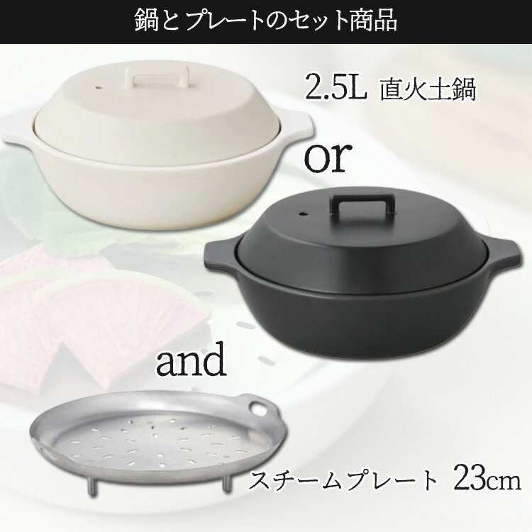 KINTO KAKOMI 2点セット 直火土鍋2.5L&スチームプレート23cm (3〜4人用 浅型 直火 電子レンジ オーブン対応 食洗機使用可 丈夫 割れにくい 便利な鍋 炊く 煮る 蒸し料理)【送料無料】