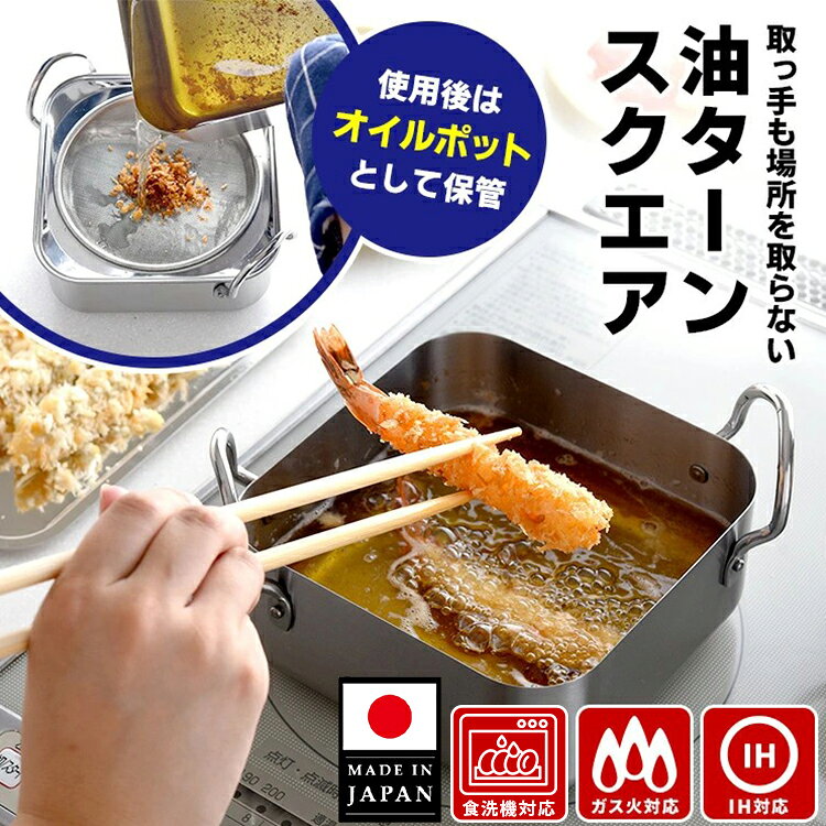 【300円OFFクーポン】取っ手も場所を取らない 油ターン(ユウターン) スクエア アーネスト 16cm(IH対応 日本製 揚げ鍋 揚げ物用鍋 オイルポット ステンレス製 角型 セット商品 油切り 網皿 コンパクト)【ポイント10倍/送料無料】【p1203】