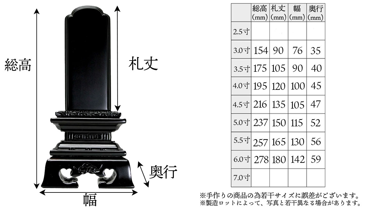 このお位牌の特徴・説明 春日型をベースとしたフォルムはどっしりとした安定感があり、札板の下の蓮華をかたどった彫刻が印象的。 春日型の札が半円型なのに対して、勝美型の札は木瓜型なのも特徴です。 良質でデザイン性も高いわりに価格がリーズナブルなため、唐木位牌でも不動の人気を誇っている商品です。 サイズも豊富でカラーは黒檀・紫檀からお選びいただけます。 位牌のサイズ・大きさ お位牌は、4.0寸が標準・一般的なサイズになります。 ※お仏壇のサイズ・大きさによって変わってきますので、ご不明時はお問い合わせください。 ご本尊様やご先祖様のお位牌より大きくならないようにするのがお位牌のマナーとされています。 使われている材質や素材 材質黒檀 / 紫檀(パーロッサ) 仕上げ艶消仕上げ 原産国海外 → 位牌の書き方の見本はこちら 戒名のご連絡は購入画面の【備考欄】からもご記入できます。 位牌 塗位牌 勝美 上塗 モダン コンパクト 子供 赤ちゃん ミニ 軽 仏具 老人ホーム 仏壇用品 仏具用品 用品 上置き コンパクト モダン仏具 ミニ仏具 小型 小さい仏壇 子供 赤ちゃん コンパクト仏壇 現代仏壇 家具調仏壇 家具調 リビング仏壇 現代 洋風 和室 led ろうそく サイドボード チェスト リビング マンション シンプル ペット おしゃれ 仏壇モダン 浄土真宗 大谷派 本願寺派 法華 門徒 法事 法要 送料無料スマイル仏壇 トップ 位牌 唐木位牌 唐木位牌 - 勝美 唐木位牌 - 勝美 全宗派対応 唐木位牌 - 勝美 受け台の蓮華の装飾が印象的、塗位牌でも人気の勝美型の唐木タイプです。 商品番号ihai-karaki-004 サイズ3.0寸~6.0寸 当店販売価格10,400円~ この商品を写真で確認 クリックすると拡大写真がご確認頂けます。 色味などはモニタ等によって少し異なる場合がございますのでご了承ください。 黒檀の正面からの写真 紫檀の正面からの写真 黒檀の斜めからの写真 紫檀の斜めからの写真 黒檀の台座のアップ写真 紫檀の台座のアップ写真 黒檀の名入れサンプル(最大サイズの拡大写真はコチラ) 紫檀の名入れサンプル(最大サイズの拡大写真はコチラ) この商品のサイズやその他の特徴 お位牌は、4.0寸が標準・一般的なサイズになります。 ※お仏壇のサイズ・大きさによって変わってきますので、ご不明時はお問い合わせください。 ご本尊様やご先祖様のお位牌より大きくならないようにするのがお位牌のマナーとされています。 使われている材質や素材 材質黒檀 / 紫檀(パーロッサ) 仕上げ艶消仕上げ 原産国海外 この商品を購入する