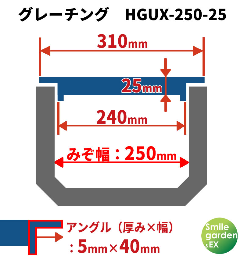 ノンスリップ型 グレーチング U字溝用 溝蓋 みぞ幅250mm用 (乗用車) 長さ995mm 【代引き・日祝配達・時間指定不可】側溝 排水溝 溝ふた 溝蓋 溝 蓋 ふた 駐車場 ガレージ 〈grating:グレーチング〉 HGUX 250-25