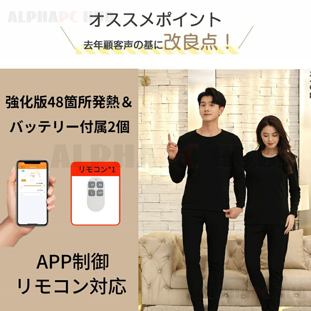【25年改良版☆AI ヒーティング+リモコン/20000mAhバッテリー*2付き】電熱インナー 14/28/32/40/48箇所発熱 上下セット 日本製ヒーター 電熱インナーウェア メンズ レディース ヒーター付き ヒートインナー 発熱シャツ 電熱パンツ 電熱ウェア インナーパンツ 防寒着 母の日