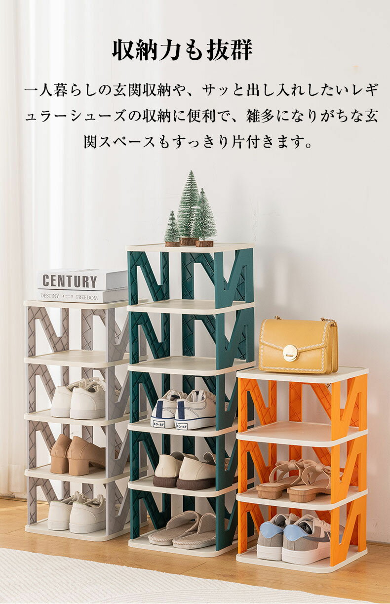 メーカー希望小売価格はメーカーカタログに基づいて掲載しています商品詳細 素材 プラスチック>サイズ 2段(約27*27*17cm) 3段(約27*27*33cm) 4段(約27*27*49cm) 5段(約27*27*66cm) 6段(約27*27*81cm) 7段(約27*27*97cm) 8段(約27*27*113cm) 9段(約27*27*129cm) 【手作業による測定の場合、1~2cm程度の誤差が生じる可能性があります】 カラー グレー グリーン オレンジ 特徴 [出し入れが便利]オープンタイプなので、風通しが良く、カビやニオイの原因となる湿気が留まりにくくなっています。 [合理的な棚間隔]さまざまな靴のタイプに対応し、高さの異なる靴も自由に収納できます。 [凹凸デザインで]凹凸のあるデザインだから、倒れそうになっても中身がこぼれない。 [場所を取らない]わずか本1冊分の大きさ(約0.06m2)。狭いスペースでも賢く収納できます。 [自由に組み合わせ可能]好きな段数で自由に組める!あなただけの収納を作ろう。 [組み立てが簡単]ネジ不要!工具いらずで女性でもらくらく組立て可能 注意事項 ●商品のお色は、照明の関係・モニターにより色の見え方が実際の商品と多少異なることがございます。あらかじめご了承ください。 ●サイズは平置きで測定しております。多少の誤差がある場合がございます。