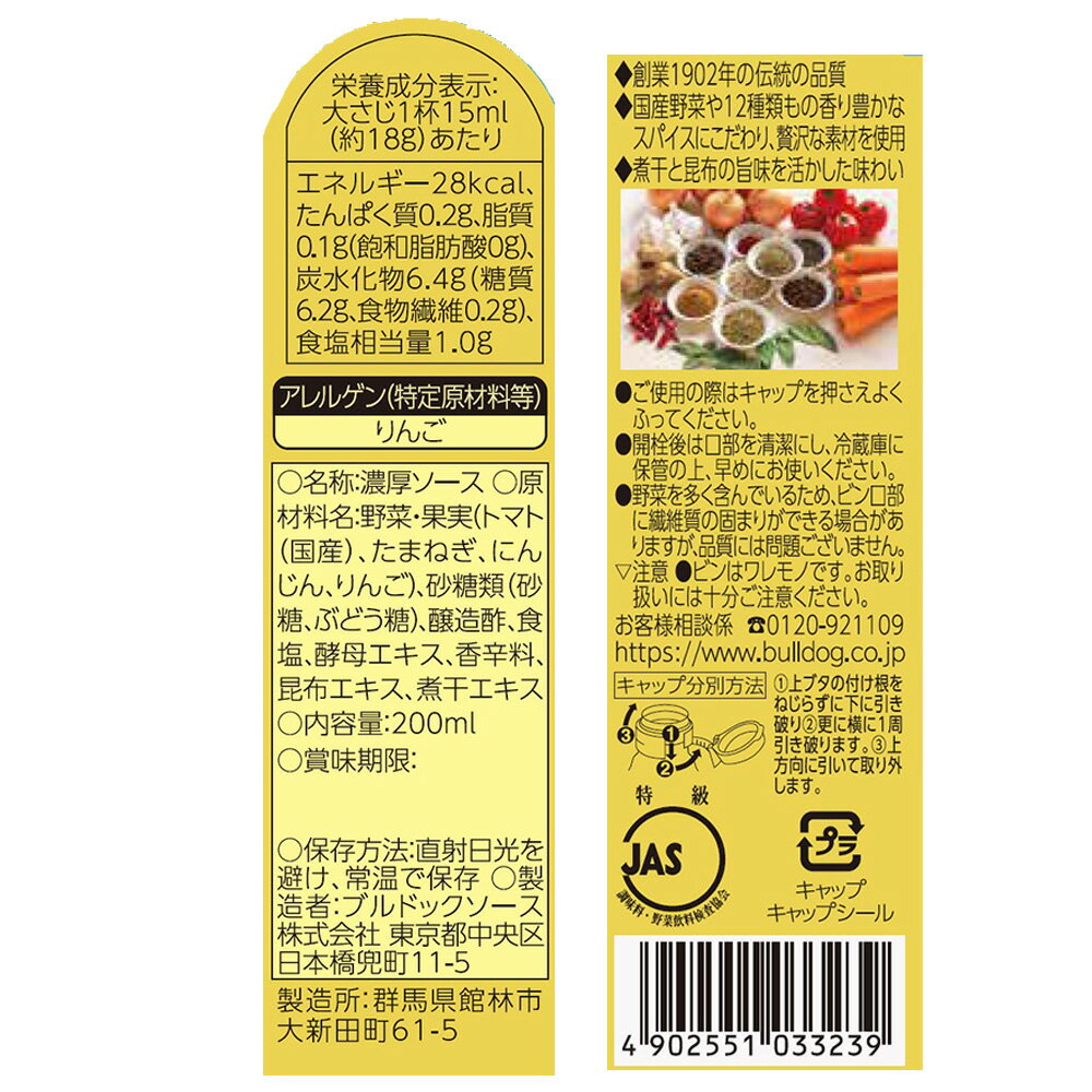 ショップトップ > カテゴリトップ > その他●商品特徴1国産野菜使用の高品質なソースです。2添加物(着色料・増粘剤・化学調味料・甘味料)を加えていません。3国産野菜や12種類もの香り豊かなスパイスにこだわり、贅沢な素材を使用しています。4煮干と昆布の旨味を活かした味わいです。5高品質のものを求められる方にピッタリのソースです。●原材料野菜・果実(トマト、たまねぎ、にんじん、りんご)、砂糖類(砂糖、ぶどう糖)、醸造酢、食塩、酵母エキス、香辛料、昆布エキス、煮干エキス●保存方法開栓後は口部を清潔にし、冷蔵庫に保管の上、早めにお使いください。●備考ご使用の際はキャップを押さえよくふってください。野菜を多く含んでいるため、ビン口部に繊維質の固まりができる場合がありますが、品質には問題ございません。ビンはワレモノです。お取り扱いには十分ご注意ください。●アレルゲンなし●複数購入の際のご注意商品を複数ご購入いただいた場合、配送時にまとめて一つに梱包されることがございます。個別の梱包をご希望の場合は、1点でのご購入にてお願いいたします。新着商品はこちらキリンビバレッジ おいしい免疫ケア 100ml1,097円 ちぬや むかしのコロッケ 60g×5個176円 ちぬや むかしのコロッケ 60g×5個×5個1,677円 ちぬや むかしのコロッケ 60g×5個×101,930円 ちぬや むかしのコロッケ 60g×5個×152,407円三幸産業 緑黄色野菜使用 乾燥野菜ミックス 3,229円サン海苔 佐賀有明海産 焼きのり 全形50枚6,633円サン海苔 佐賀有明海産 焼きのり 全形50枚3,654円再販商品はこちら マルハニチロ 肉巻きポテト 92g×16個5,410円蔵家 クリームクロワッサン 8個 3,780円博多紀久屋 数の子松前満杯詰め 1セット お歳4,860円 明治 The Premium 抹茶 200m7,851円スーパーSALE限定 からだスマイルプロジェク2,120円スーパーSALE限定 からだスマイルプロジェク1,455円スーパーSALE限定 守山乳業 POKECA1,250円スーパーSALE限定 守山乳業 POKECA1,127円類似商品はこちらブルドックソース 特級とんかつソース 200m509円ブルドックソース 特級ウスターソース 200m2,245円ブルドックソース 特級ウスターソース 200m509円ブルドックソース スーパープレミアムソース極 3,449円ブルドックソース スーパープレミアムソース極 810円 マルハニチロ ソースとんかつ 115g×4個2,178円ブルドックソース 月島もんじゃ焼ソース味 812,137円ブルドックソース 月島もち明太子もんじゃ焼ソー2,735円ショップトップ > カテゴリトップ > その他新着商品はこちら2025/11/27キリンビバレッジ おいしい免疫ケア 100ml1,097円2025/11/26 ちぬや むかしのコロッケ 60g×5個176円2025/11/26 ちぬや むかしのコロッケ 60g×5個×5個1,677円2025/11/26 ちぬや むかしのコロッケ 60g×5個×101,930円2025/11/26 ちぬや むかしのコロッケ 60g×5個×152,407円2025/11/26三幸産業 緑黄色野菜使用 乾燥野菜ミックス 3,229円2025/11/26サン海苔 佐賀有明海産 焼きのり 全形50枚6,633円2025/11/26サン海苔 佐賀有明海産 焼きのり 全形50枚3,654円再販商品はこちら2025/11/28 マルハニチロ 肉巻きポテト 92g×16個5,410円2025/11/28蔵家 クリームクロワッサン 8個 3,780円2025/11/28博多紀久屋 数の子松前満杯詰め 1セット お歳4,860円2025/11/28 明治 The Premium 抹茶 200m7,851円2025/11/27スーパーSALE限定 からだスマイルプロジェク2,120円2025/11/27スーパーSALE限定 からだスマイルプロジェク1,455円2025/11/27スーパーSALE限定 守山乳業 POKECA1,250円2025/11/27スーパーSALE限定 守山乳業 POKECA1,127円類似商品はこちらブルドックソース 特級とんかつソース 200m509円ブルドックソース 特級ウスターソース 200m2,245円ブルドックソース 特級ウスターソース 200m509円ブルドックソース スーパープレミアムソース極 3,449円ブルドックソース スーパープレミアムソース極 810円 マルハニチロ ソースとんかつ 115g×4個2,178円ブルドックソース 月島もんじゃ焼ソース味 812,137円ブルドックソース 月島もち明太子もんじゃ焼ソー2,735円