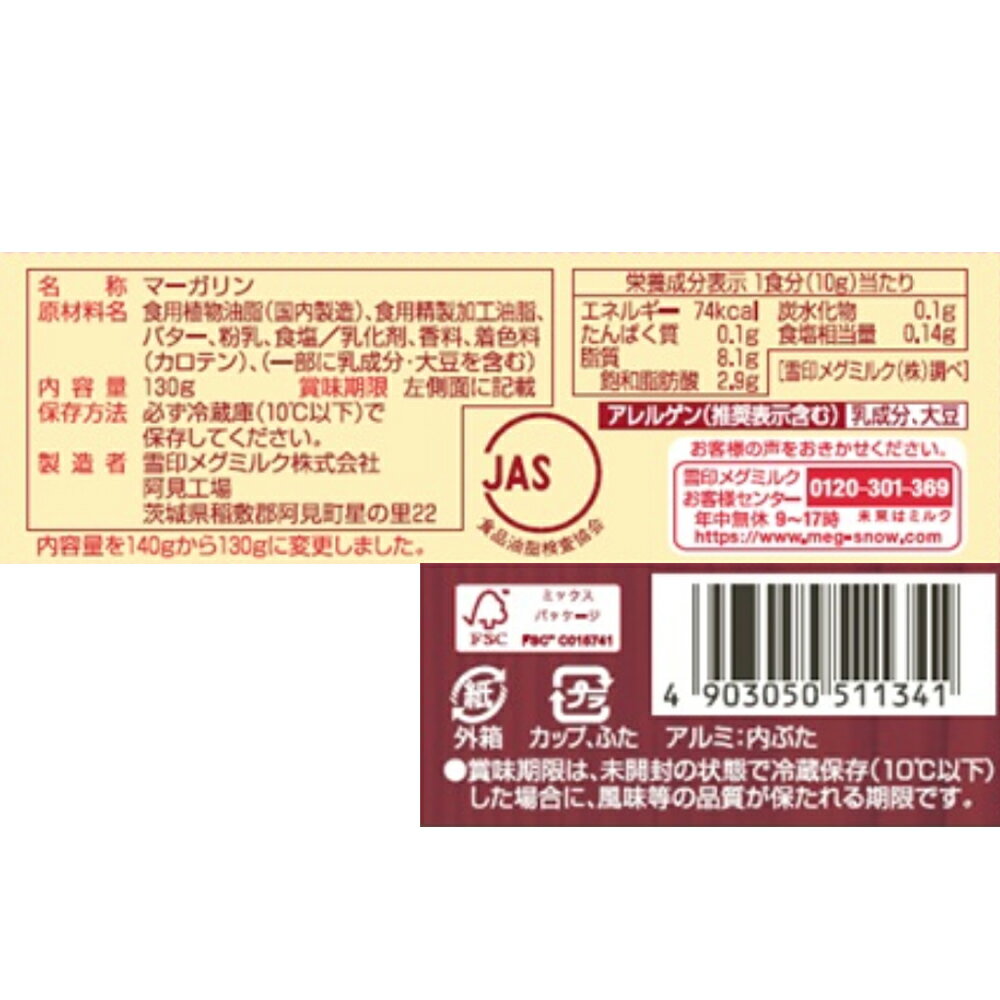 [冷蔵] 雪印メグミルク バター仕立てのマーガリン 130g×3個