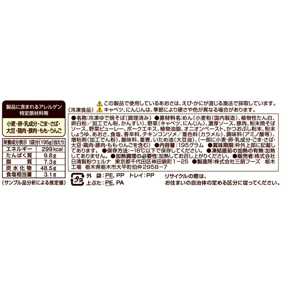 [冷凍] 日清製粉ウェルナ いろいろ便利な ソース焼きそば 3個入 195g×6個