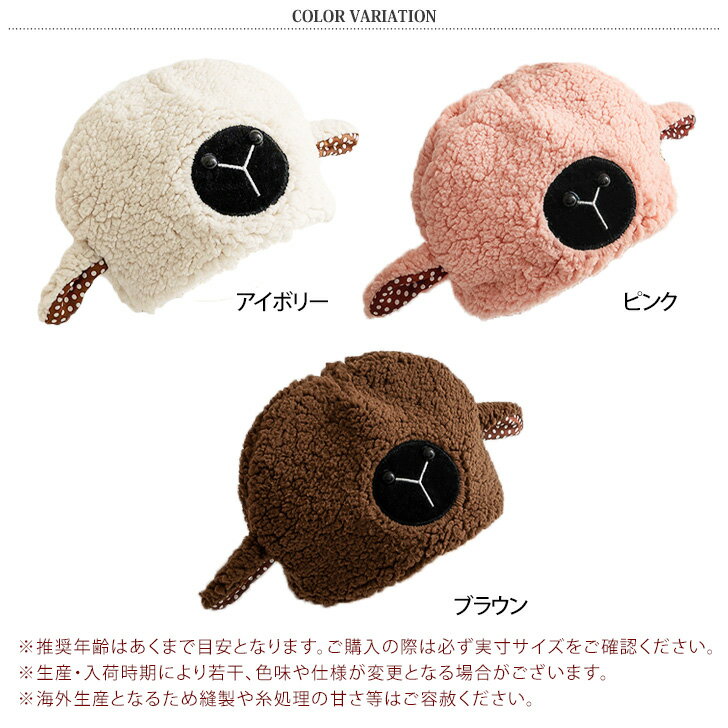 \本日店内EVENT/ 送料無料 キッズサイズ もこもこ ひつじ フリースキャップ ベビー 赤ちゃん キッズ 子供 男の子 女の子 帽子 ぼうし 子供帽子 キッズ帽子 キャップ フリース ボア 冬 秋 あったか 暖かい おしゃれ かわいい 韓国 メール便