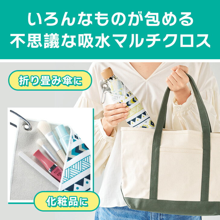 \本日店内EVENT/ 送料無料 ピタッ!と包めるカラビナ付き吸水マルチクロス くっつきタオル くっつきクロス ぺたぺたクロス くっつく クロス タオル 吸水 くっつき風呂敷 マジッククロス ポーチ 折り畳み傘 傘カバー ペットボトル カメララップ 簡単 メール便