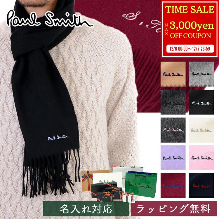【最大1000円OFFクーポン発行中 12/11 11:59まで!】 ポールスミス Paul Smith マフラー メンズ レディース MUFFLER ウール ブラック グレー チャコールグレー ネイビー ベージュ ワイン レッド 黒 933D-AS04