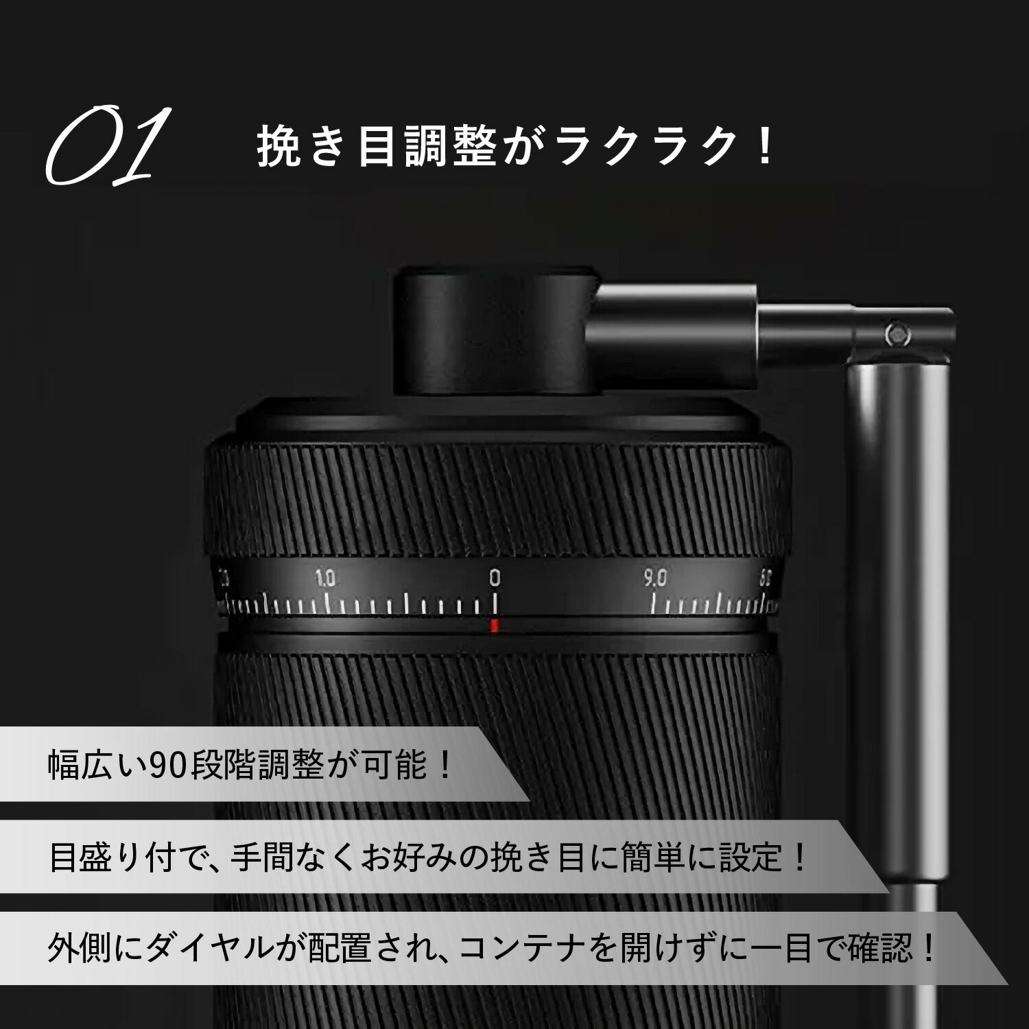 【最大1000円OFFクーポン発行中 11/17 09:59まで!】 TIMEMORE タイムモア コーヒーミル 手動 豆挽き コーヒーグラインダー 家庭用 省力 粗さ調整可能 ブラック 黒 MLB700BK