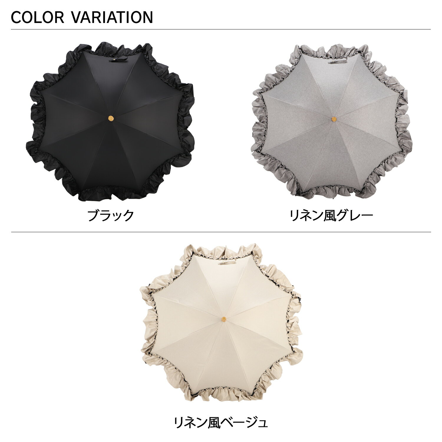 ピンクトリック pinktrick 長傘 日傘 雨傘 晴雨兼用 レディース 50cm 軽量 完全遮光 遮熱 UVカット 紫外線対策 ビッグフリル ブラック グレー ベージュ 黒