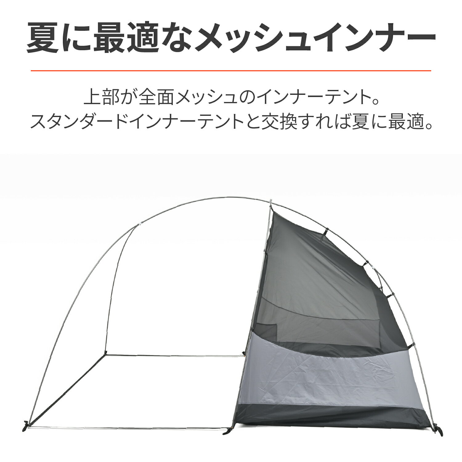 MAEHIRO DOME(メッシュインナー仕様)の補修用メッシュインナー単品売り。 MAEHIRO DOME AS(スタンダードインナー仕様)(42364)(42911)への装着も可能です。 ・カラー:ブラック/グレー (MAEHIRO DOME(メッシュインナー仕様)フォレストカーキに付属するメッシュインナーと同色となります。) ・材質:68Dポリエステル/PU(耐水圧3000mm) ・サイズ:210x120(cm)(収納サイズ:Φ14×43(cm)) ・重量:約840g ・付属品:収納袋