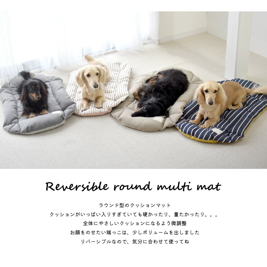 商品について 実寸サイズ 上記画像をご参照ください。 特 徴 ふかふか中綿が入った【リバーシブル ラウンドマルチマット】 おうちで広げてベッドとしても、カフェマットとしても。 全体的に優しいクッションになるように微調整しました♪ お顔をのせたい端っこは、少しボリュームを出しました。 また、専用ではないですが・・・ ・ピッコロカーネ ・エアバギーDOME3 ・エアバギーFitt wiz ・タント2 にもいい感じでつけられました♪ 横向きに引っ掛けると、あご置きにもちょうどいい感じでした! リバーシブルで使えるので、気分や用途に合わせて楽しんでいただけます♪ ※クールタイプのみ接触冷感加工をしています 素材 上記画像をご参照ください。 カラー ・ネイビー(ボーダータイプ) ・アイボリー(ボーダータイプ) ・ベージュ(ヘザータイプ) ・グレー(ヘザータイプ) ・ピンクベージュ(クールタイプ) ・ミントグリーン(クールタイプ) ※クールタイプのみ接触冷感加工をしています 注意事項 ※できるだけ設定実寸での仕上がりとなるよう生産しておりますが、若干の個体差がありますので、 +−1〜2cm程度の誤差はご了承いただきますようお願いいたします。 ※PC画像・光により実物と画像のカラーが異なる事があります。 出来る限り近いお色の物にさせて頂いておりますがご了承下さい。 ※他店販売もしていますので確認・注意はしていますが店頭にて品切れの場合、 キャンセルさせて頂く事があります。御了承下さい。