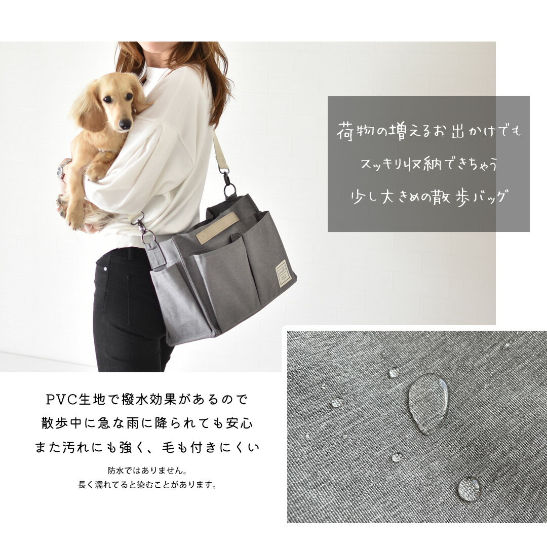 商品について 実寸サイズ 上記画像をご参照ください 特 徴 【丈夫で軽く、張りのあるPVC素材の2WAYバッグ】 ポケットがいっぱい、トートバッグにもショルダーバッグにも!! 当店人気のお散歩バッグ(品番sd156)から、PVC素材のバッグがでました♪ 外側には間口の広いポケットが6つ。バッグの中で迷子になりがちな小さなものも分けて入れられ、サッと取り出せます。 軽くて丈夫なPVC素材を使用し撥水効果があるので、汚れてもサッとふき取れ、わんちゃんの毛もつきにくいのも嬉しいポイント♪ ウォーターボトルを入れる仕切りつき。、大きめのサイズなので太めの水筒やタンブラーも入ります。 シンプルなデザインなのでユニセックスで使え、お散歩バッグとしてだけでなく、普段使いのトートバッグバッグとしても◎ 素材 【本体】 ポリエステル100% 【革部分】 合成皮革 カラー ・チャコール (ショルダー色:アイボリー) ・ブラック (ショルダー色:アイボリー) ・キャメル (ショルダー色:ベージュ) ・デニムネイビー (ショルダー色:ベージュ)・カーキ(ショルダー色:ベージュ) 注意事項 ※入荷時期により、多少の色の差がございます。ご了承ください。 ※できるだけ設定実寸での仕上がりとなるよう生産しておりますが、若干の個体差がありますので、+−1〜2cm程度の誤差はご了承いただきますようお願いいたします。 ※PC画像・光により実物と画像のカラーが異なる事があります、 出来る限り近いお色の物にさせて頂いておりますがご了承下さい。 ※他店販売もしていますので確認・注意はしていますが店頭にて品切れの場合、 キャンセルさせて頂く事があります、御了承下さい。 DOGサイズ・DOGモデルについて詳しくはこちらから→