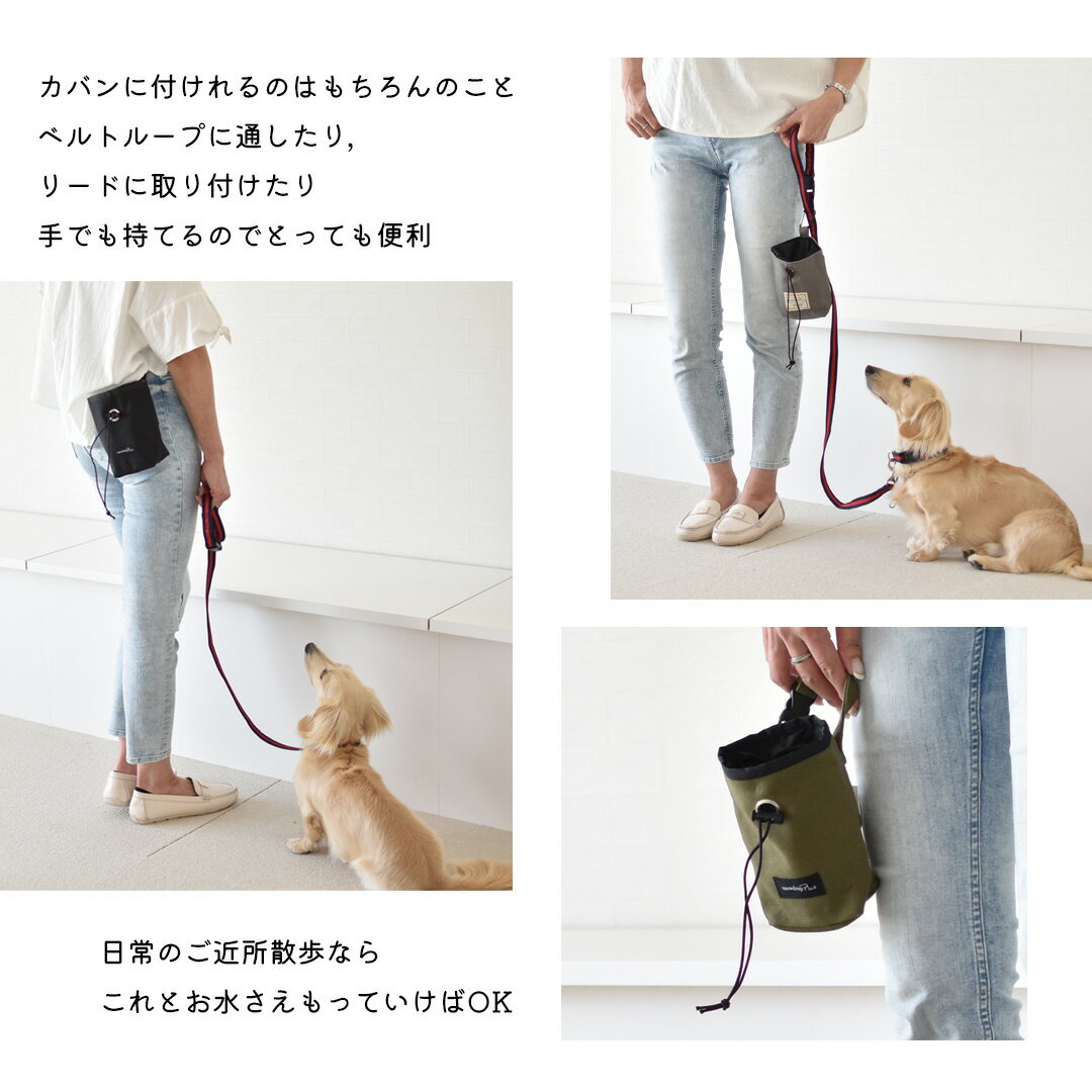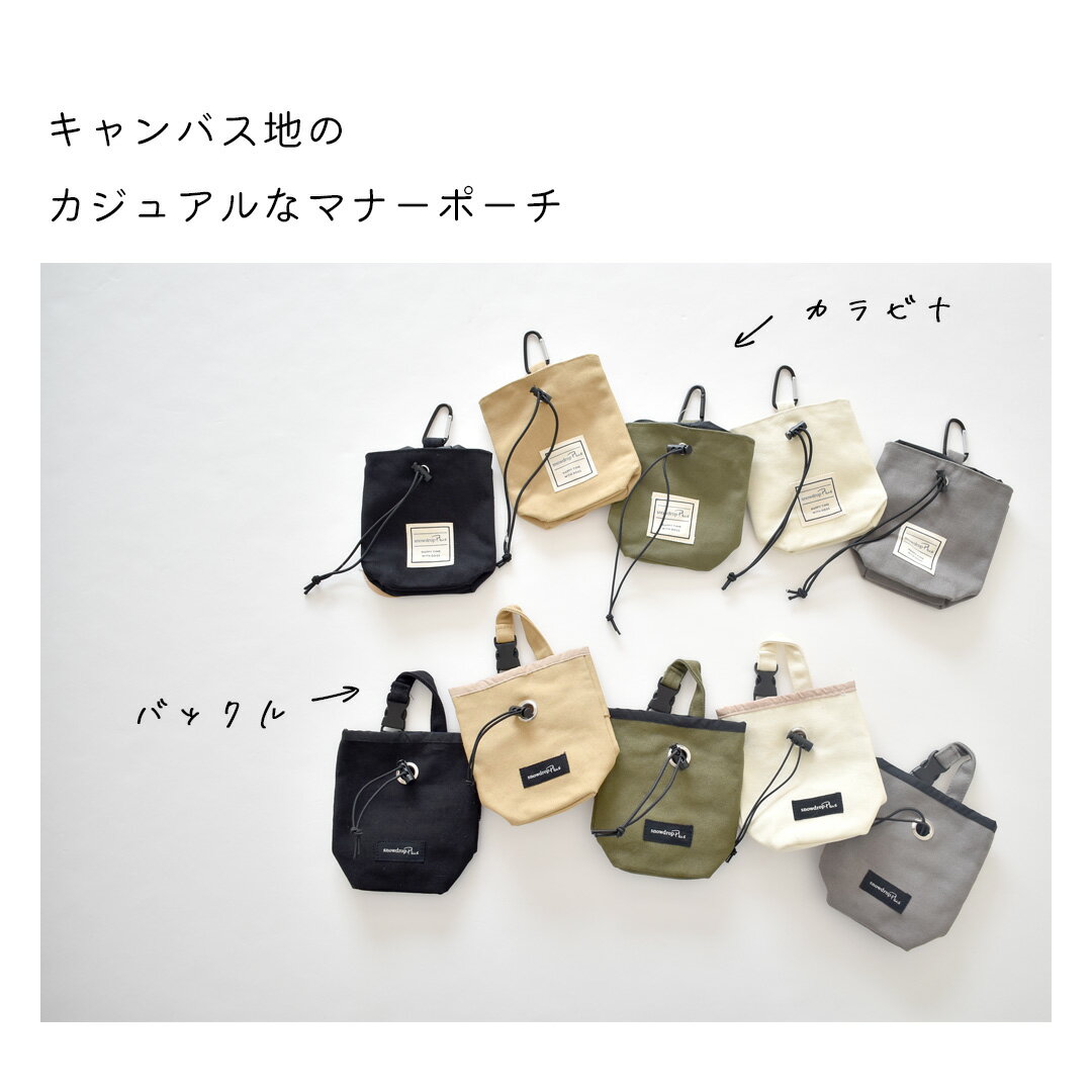 商品について 特 徴 オリジナルお散歩バッグとお揃いの、軽くて丈夫なギュッと閉まるコットン巾着マナーポーチ。 排泄物の匂いが漏れにくいギュッと閉まる巾着型。 バックルタイプとカラビナタイプの2タイプ。 ポーチ外側にはポケットティッシュやマナー袋が入るポケット付きで機能も充実。 カラビナ・バックル付きなので、お散歩バッグやベルト通しにも取り付けられます。 ギュッと絞るだけなのでおやつやタオルなどを入れてもサッと取り出せとても便利! 当店人気のコットン素材のお散歩バッグとお揃いで使っていただけます。 シンプルなデザインなのでユニセックスで使えます。 素材 表地 ・綿 100% 裏地 ・ポリエステル100% カラー ・バックルアイボリー ・バックルベージュ ・バックルカーキ ・バックルチャコール ・バックルブラック ・カラビナアイボリー ・カラビナベージュ ・カラビナカーキ ・カラビナチャコール ・カラビナブラック 注意事項 ※できるだけ設定実寸での仕上がりとなるよう生産しておりますが、若干の個体差がありますので、+−1〜2cm程度の誤差はご了承いただきますようお願いいたします。 ※PC画像・光により実物と画像のカラーが異なる事があります、 出来る限り近いお色の物にさせて頂いておりますがご了承下さい。 ※他店販売もしていますので確認・注意はしていますが店頭にて品切れの場合、 キャンセルさせて頂く事があります、御了承下さい。 DOGサイズ・DOGモデルについて詳しくはこちらから→
