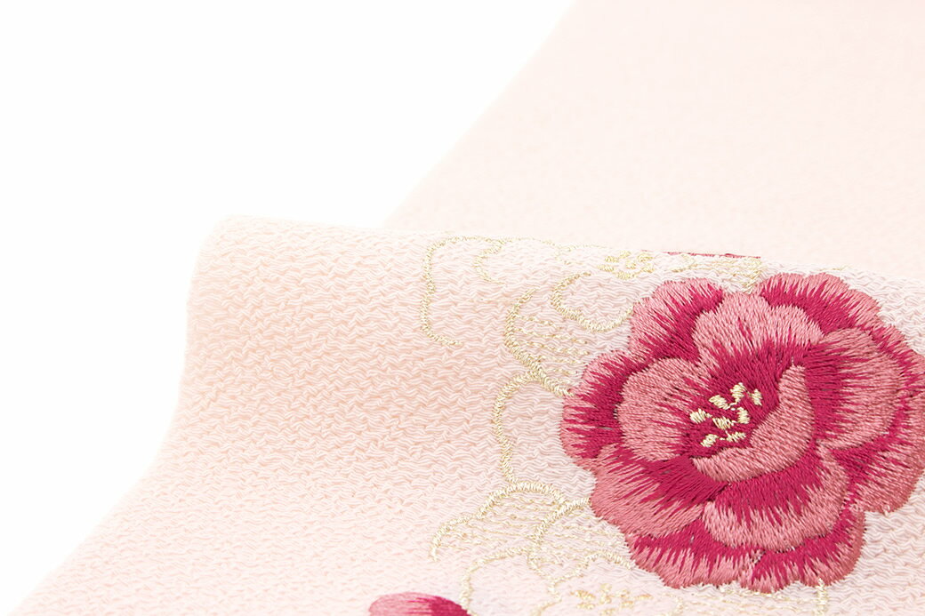 【40%OFFクーポン】決算大感謝祭|2/15~28半襟 刺繍 半衿 乙女色 ベビーピンク 銀色 牡丹 縮緬 ちりめん フォーマル 日本製 和装小物 女性 レディース