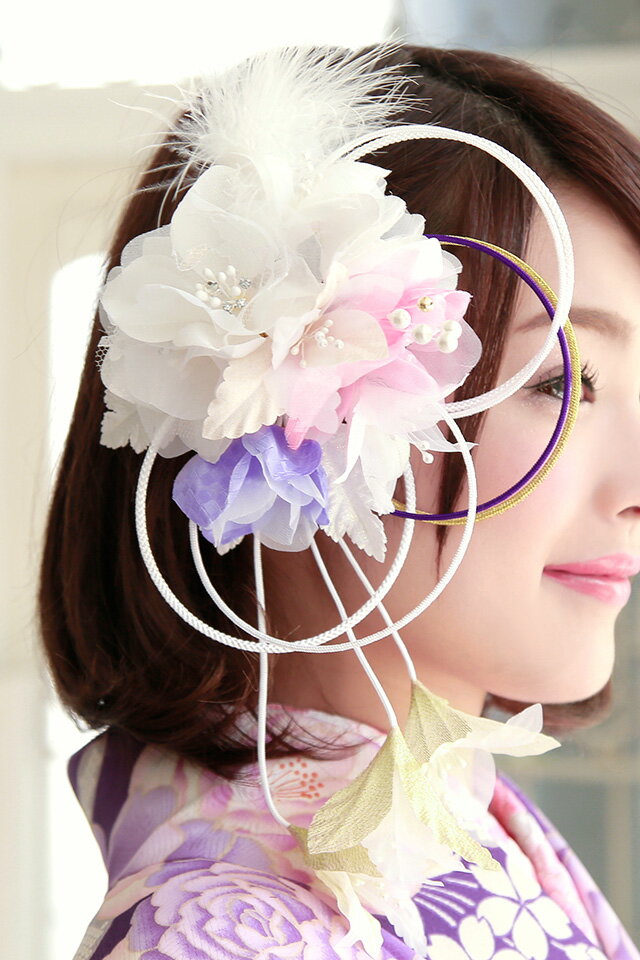 【40%OFFクーポン】決算大感謝祭|2/15~28髪飾り 成人式 白 振袖向け 卒業式 袴 はかま お花 ファー ピンク 紫 ヘアアクセサリー 着物 ふりそで 髪かざり 振り袖 【送料無料】 和装