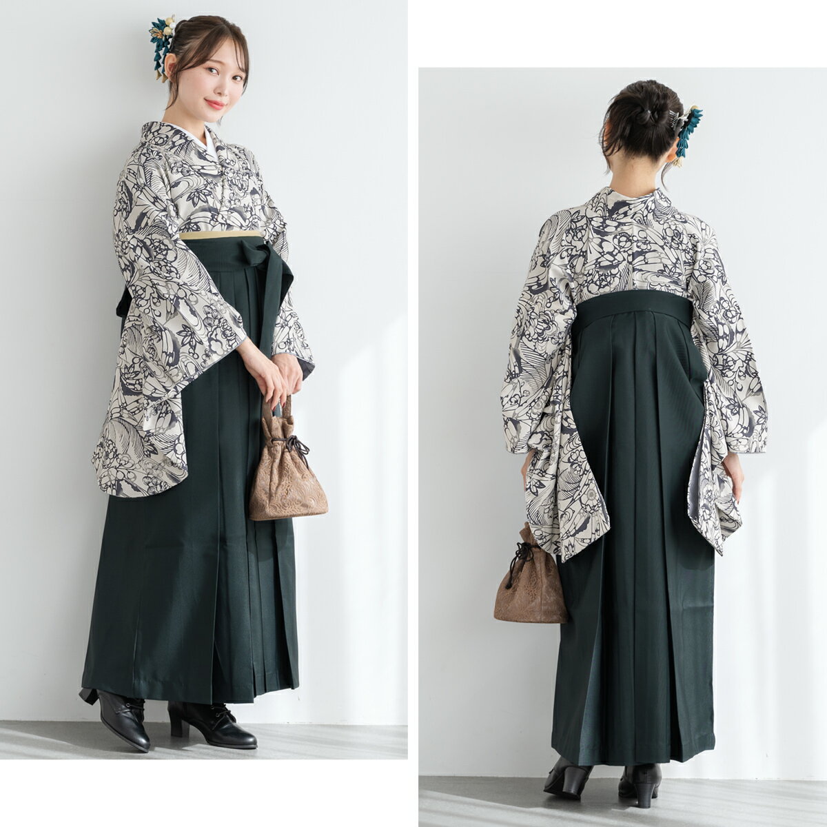 Black Friday☆最大1000円クーポン配布中☆袴セット 卒業式 大学生 小学生 レディース グレー系 灰色 ブラックグリーン ボタニカル柄 袴4点セット 和装 着物セット 販売 購入 送料無料