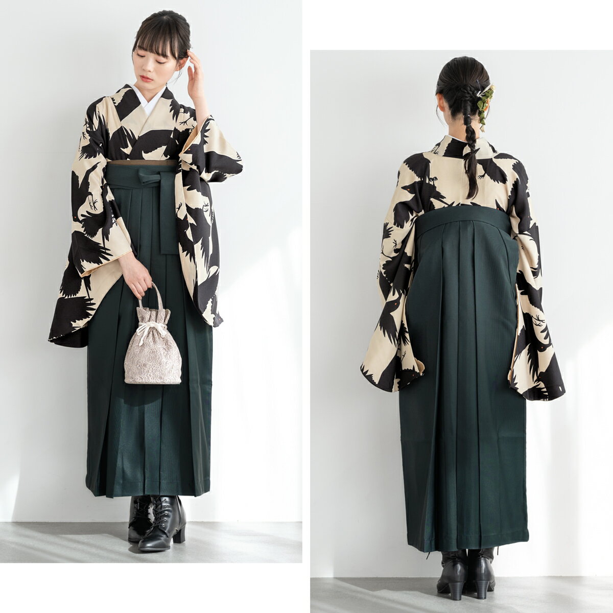 袴セット 卒業式 大学生 小学生 レディース ベージュ 黒 ブラックグリーン カラス 烏 レトロモダン 袴4点セット 和装 着物セット 販売 購入 送料無料