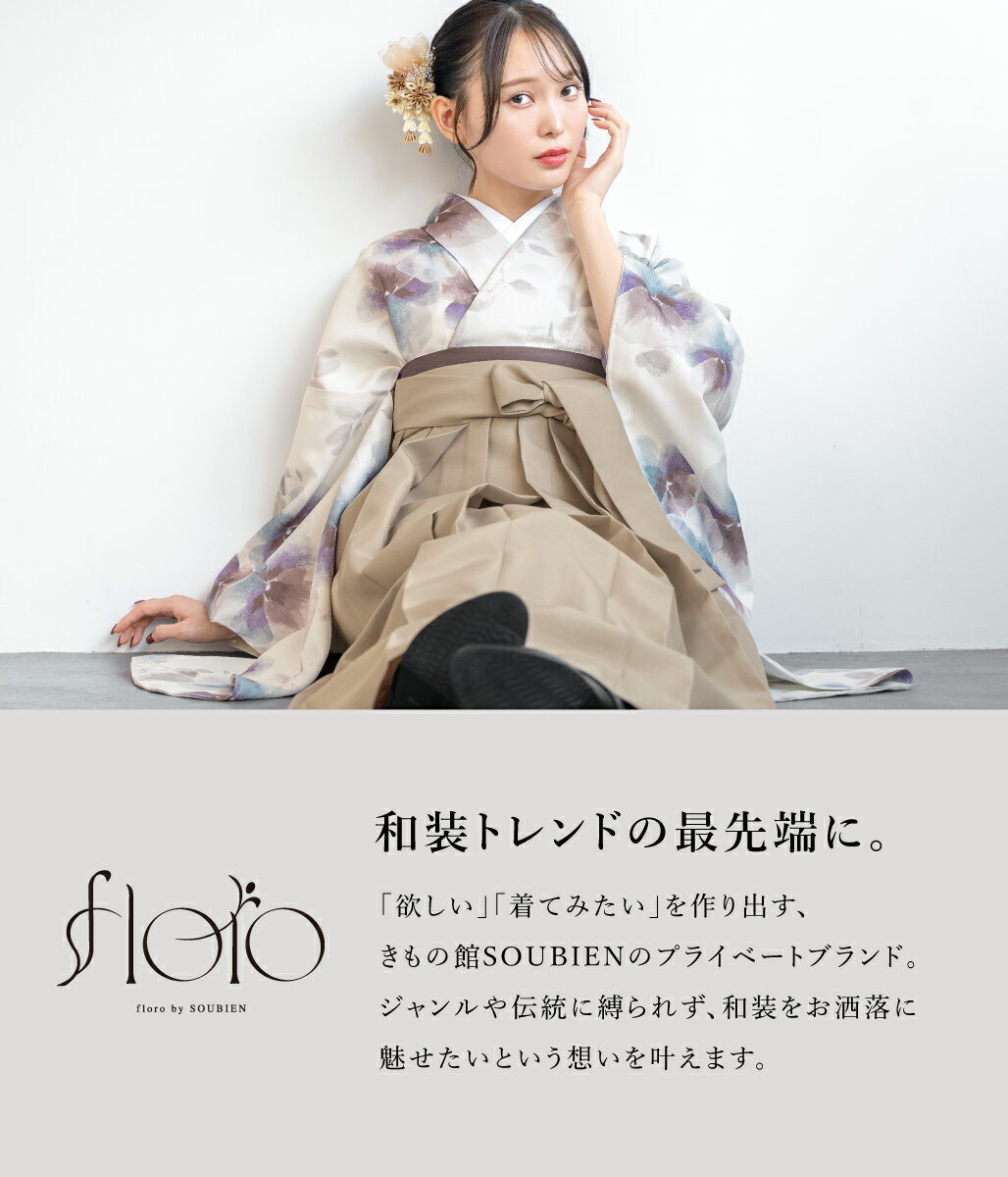 【スーパーSALE限定】最大半額★全品クーポン最大1000円OFF】袴セット 卒業式 大学生 小学生 レディース 緑 紫 茶 パンジー ベージュ 創美苑オリジナル floro 袴4点セット 和装 着物セット 販売 購入 送料無料