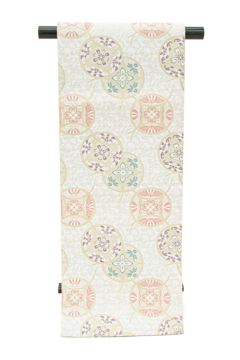 【決算大感謝祭】全品対象 最大15%OFFクーポン配布中|2/15~28まで袋帯 単品 レディース 小杉織物 訪問着 礼装 正装 フォーマル オフホワイト 破れ七宝 全通柄 ポリエステル 上品 レトロモダン 仕立て上がり 日本製 送料無料