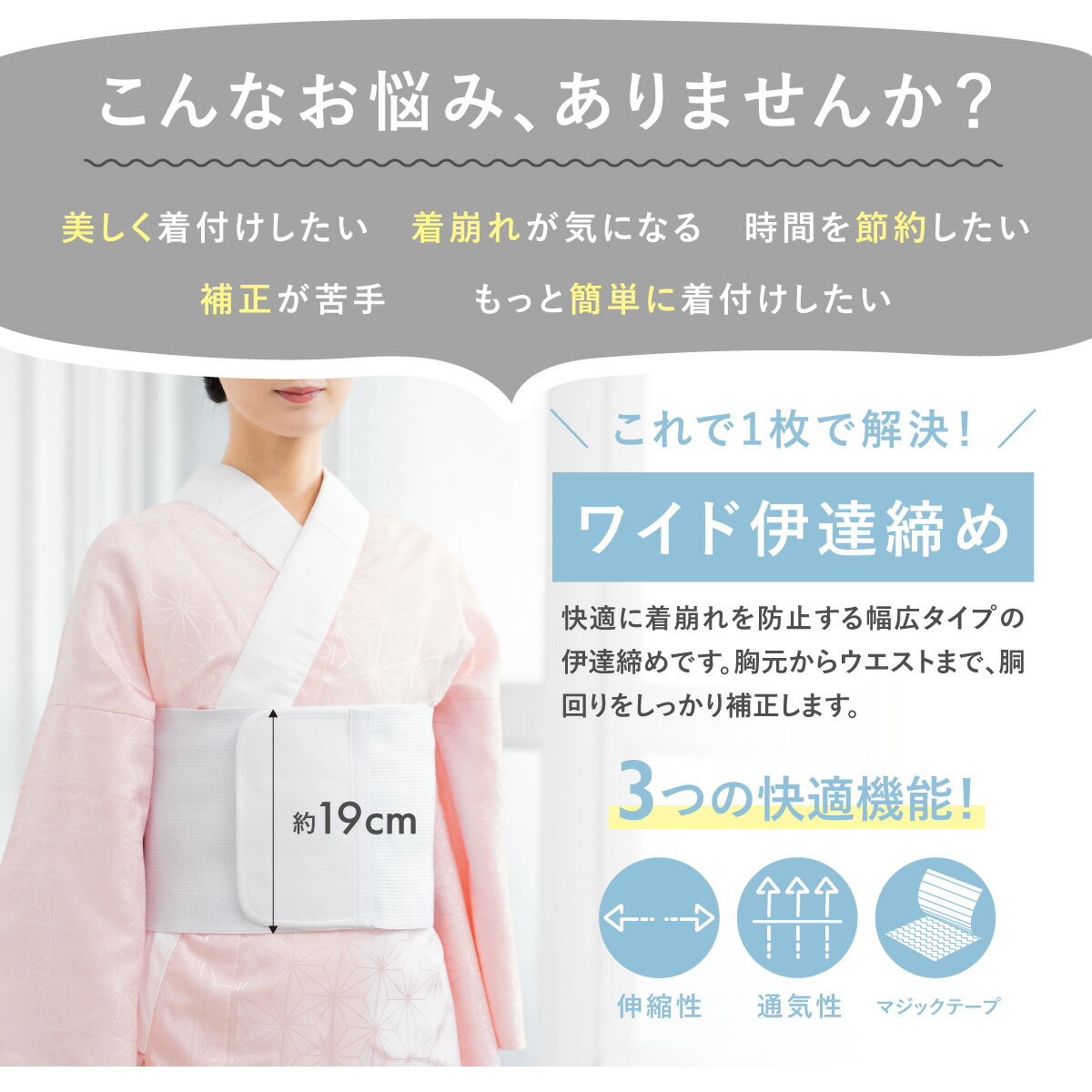 Black Friday☆最大1000円クーポン配布中☆伊達締め 伊達〆 レディース ワイド 幅広 メッシュ マジックテープ式 白 ホワイト 着付け 補正 着崩れ防止 ワンタッチ ゴム 和装 着物 簡単 便利 着付け小物 M L メール便対応 送料無料